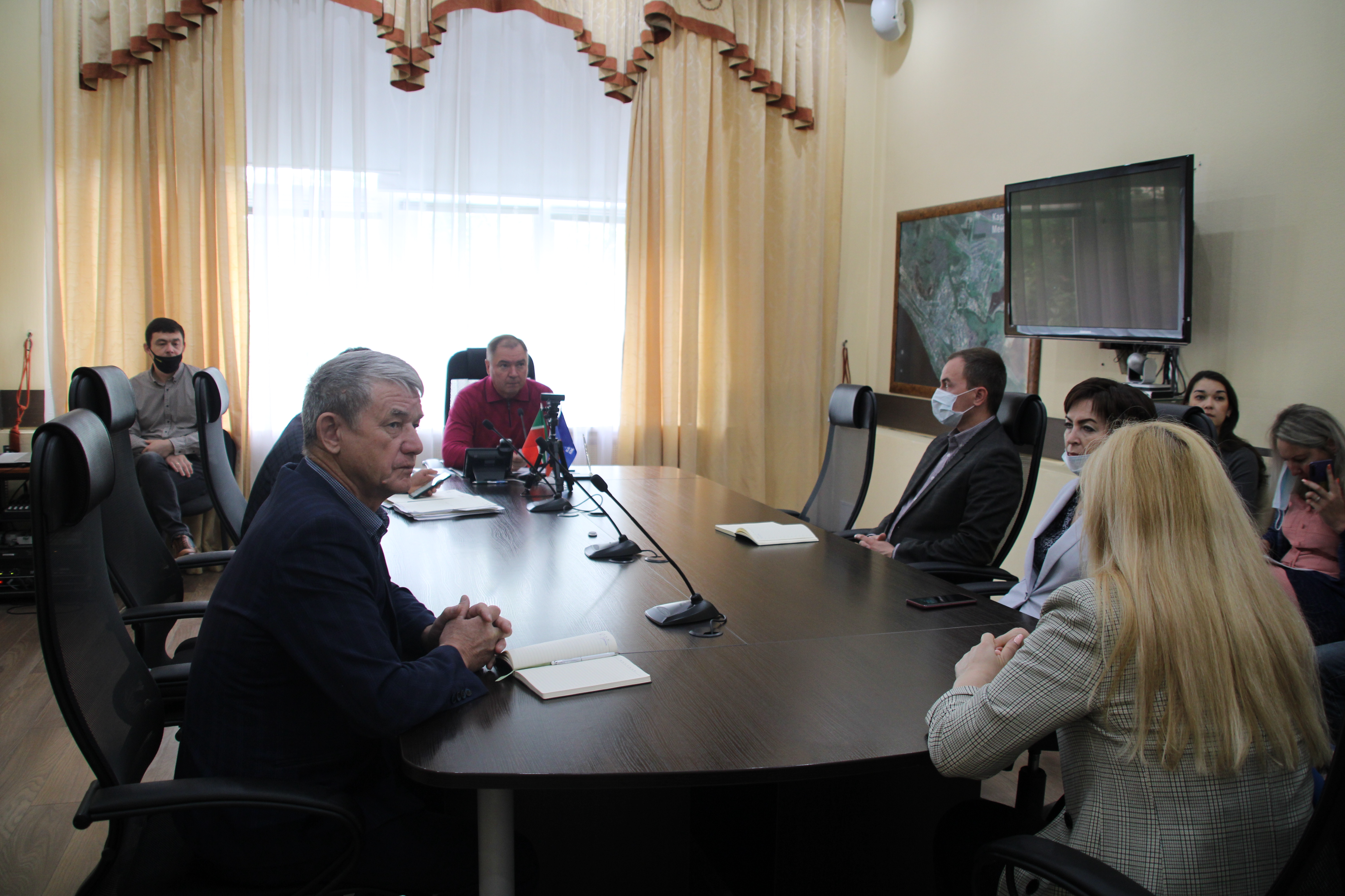Также обсудили ход капитального ремонта домов, ремонт школьных столовых, ремонт фасада муниципального архива выполнен 30-40%, с текущей недели началась сдача ЕГЭ.