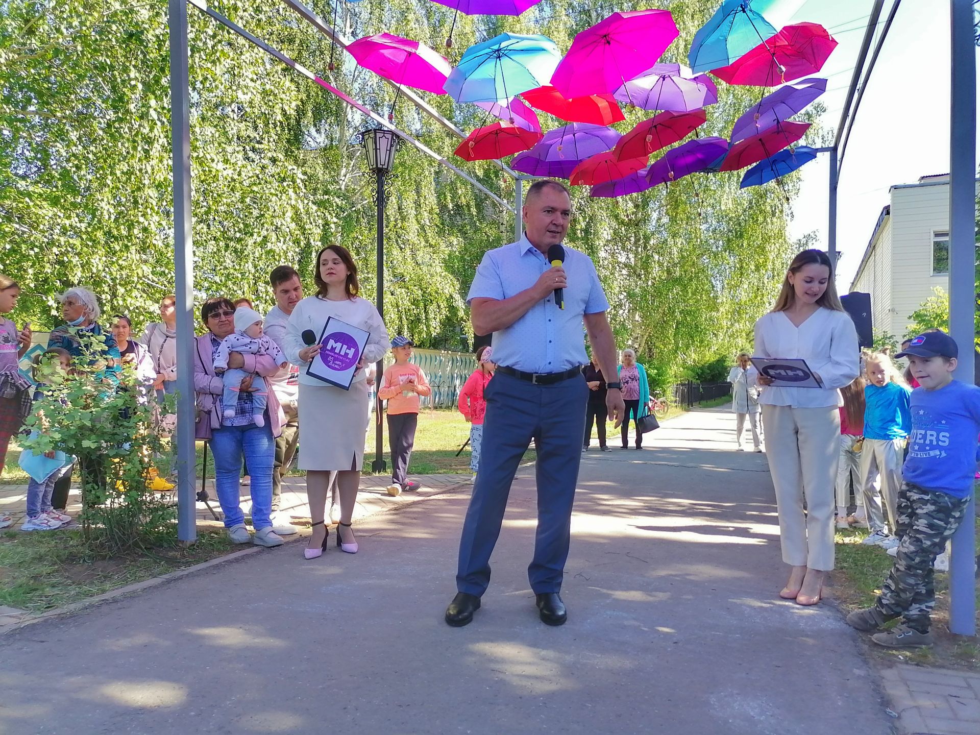 Менделеевск увидел «Аллею парящих зонтиков» четыре года назад благодаря команде редакции и теперь снова дождался. «Аллея» успела стать одной из узнаваемой чертой города, которая делает лето ещё ярче и позитивнее. Традицией стало проведение на территории Ленинского сквера различных культурных мероприятий. Для создания ещё более праздничной атмосферы скамейки раскрасили в фиолетовый – брендовый цвет «МН».