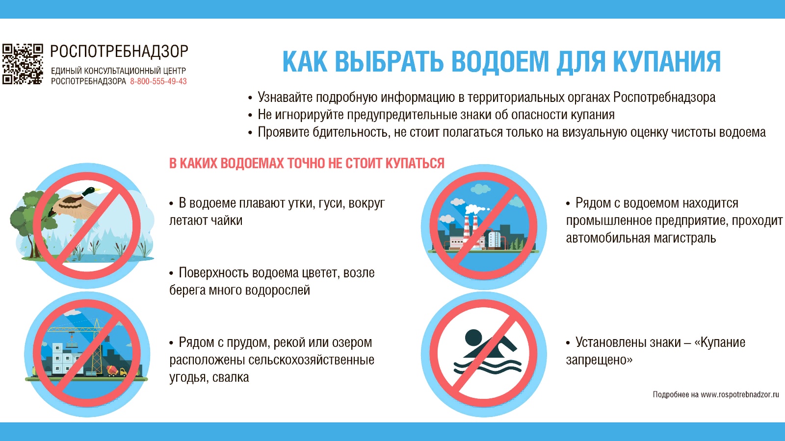 Роспотребнадзор напоминает, что безопасно купаться можно только в специально отведенных для этого местах.