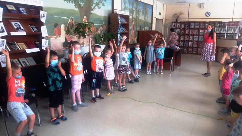Библиотекарь Казакова Л.М. рассказала ребятам из детского сада «Планета детства» биографию писателя и зачитала рассказ «Лукошко».