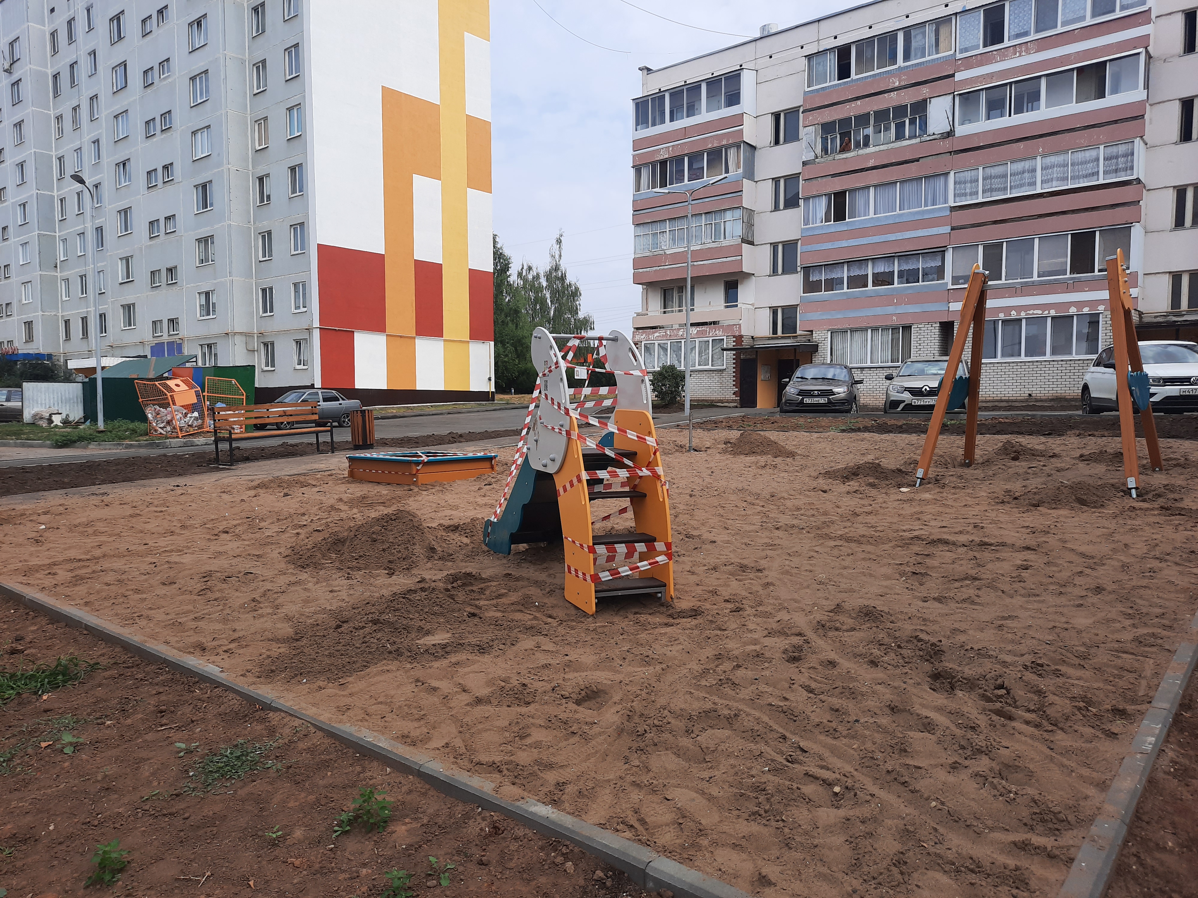 Так, по ул.Химиков,2 положен новый асфальт как во дворе, так и при въезде в него. Установлены новые скамейки, урны для мусора. Идет монтаж детских игровых элементов и других МАФов.