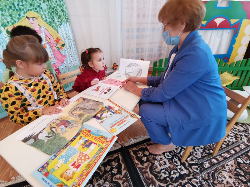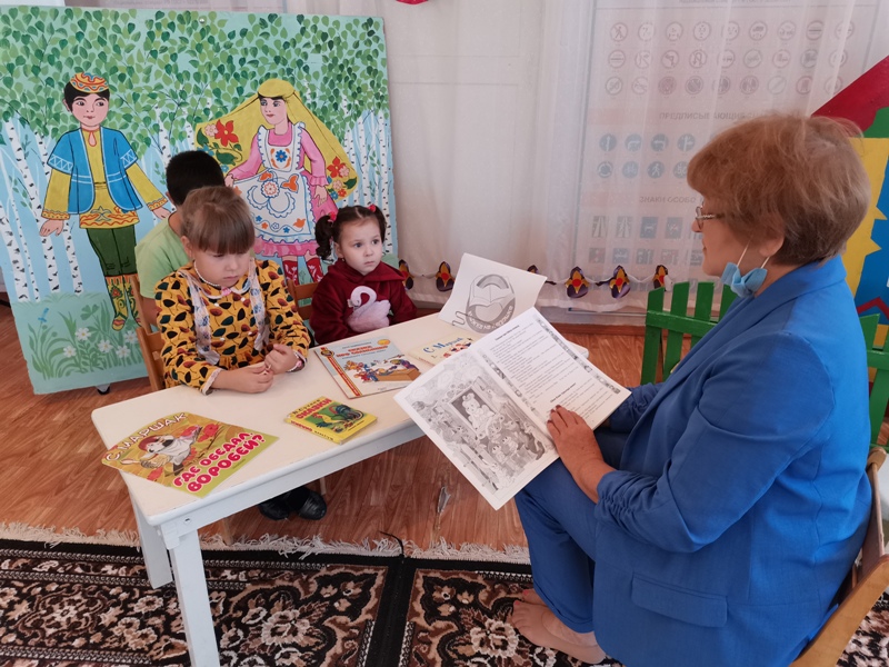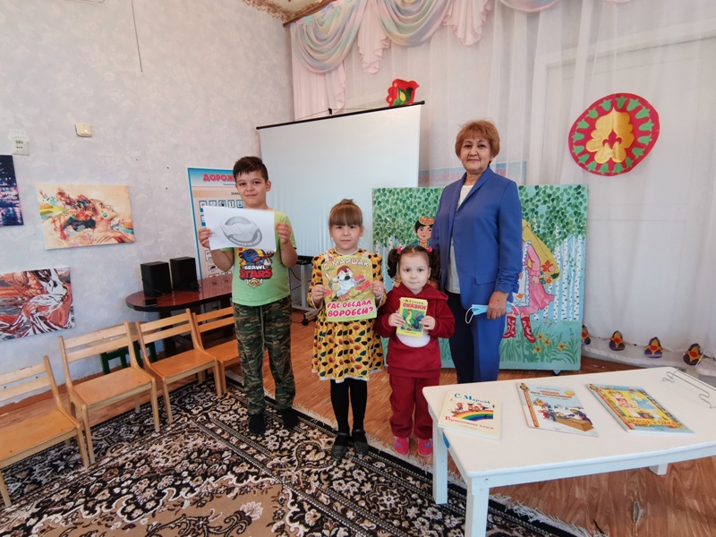 Библиотекарь рассказала детям о проводимой акции и детских писателях. Затем юные участники прослушали сказки В. Сутеева «Про бегемота, который боялся прививок», «Раз, два – дружно!», С.Прокофьевой «Маша и Ойка» на русском и татарском языках, стихотворение С.Маршака «Пудель». По окончании состоялось обсуждение, где дети высказались о неправильном поведении капризули и плаксы Ойки. Просмотр иллюстраций, яркие и красочные книги вызвали у детей большой интерес.