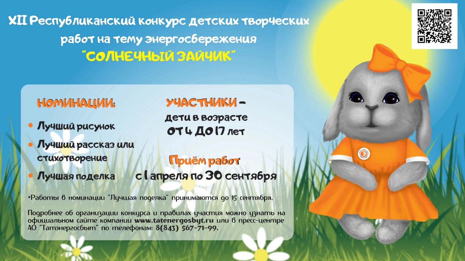 АО “Татэнергосбыт” приглашает принять участие в XII Республиканском конкурсе детских творческих работ на тему энергосбережения «Солнечный зайчик».