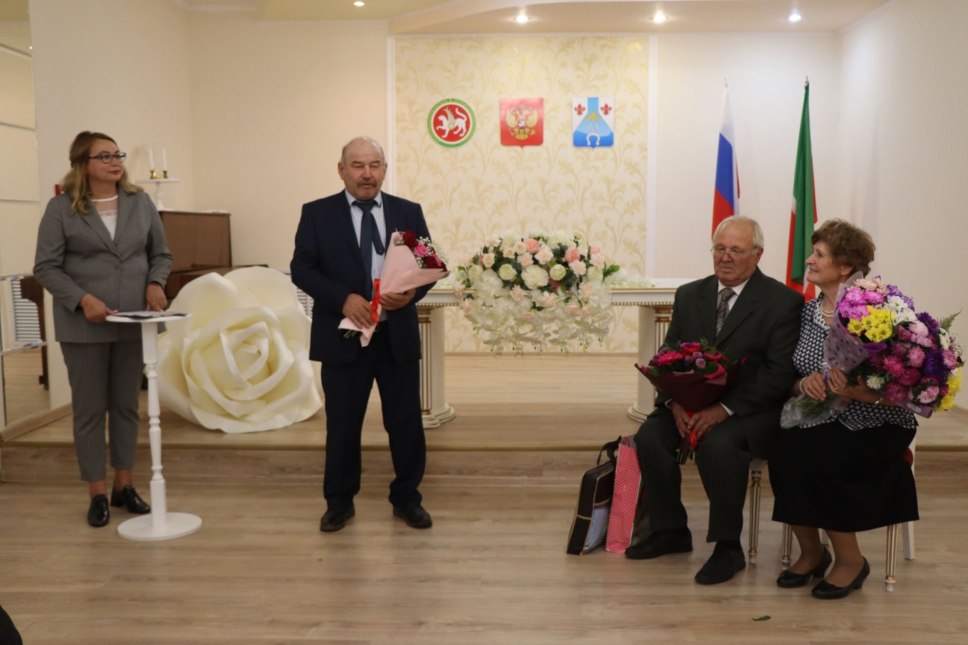 Спустя полвека супруги снова вошли в ЗАГС под свадебный марш Мендельсона. С поздравлениями к юбилярам обратились заместитель руководителя исполкома Айдар Сафаргалин, начальник Отдела ЗАГС Татьяна Алексеева, глава Енабердинского поселения Евгений Никифоров, коллеги, родные, близкие, друзья, пожелав им оставаться такими же радостными, счастливыми, пронести через годы уважение и взаимопонимание.