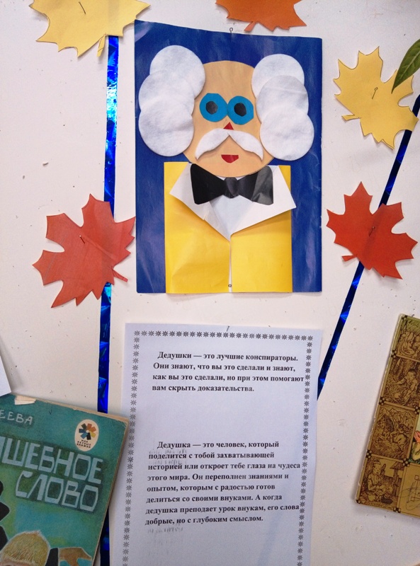 Бабушки и дедушки лучше всех на свете умеют рассказывать чудесные истории, печь невероятно вкусные пироги, жалеть и поддерживать, придумывать веселые игры и давать мудрые советы. Поэтому они достойны быть самыми милыми, сильными, яркими персонажами детских книг. На выставке представлены как знакомые, так и малоизвестные произведения, где бабушки и дедушки играют немаловажную роль. Бабушки и дедушки появляются в детских книгах как рассказчики невероятных историй и как добрые люди, готовые понять и поддержать ребенка там, где не смогли взрослые. Юным читателям под каждым кленовым листом содержатся вопросы, ответил правильно - получи приз.
