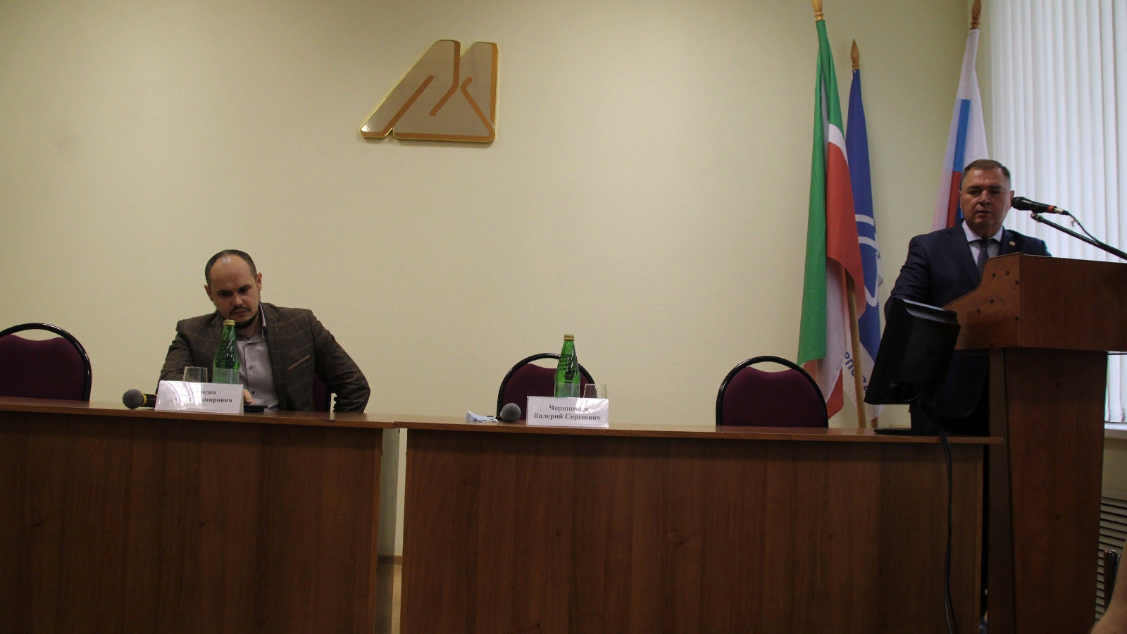 На встрече Глава района Валерий Чершинцев выступил с докладом об итогах социально - экономического развития Менделеевского муниципального района за 8 месяцев 2021 г.