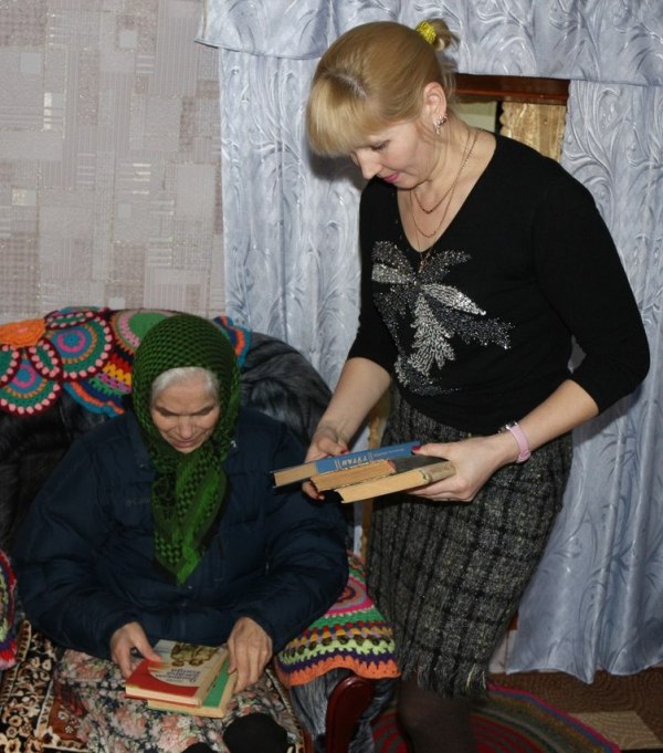 Семякова Т.Н. навестила людей преклонного возраста, поздравила их с праздником, предложила для чтения книги и периодические издания, познакомла их с новыми поступлениями книг. Они с большой радостью встретили библиотекаря. Пожилые люди очень рады такому вниманию, и всегда с нетерпением ждут библиотекаря, ведь шелест страниц новых книг, любимого журнала, приятное общение – эти маленькие радости, скрашивающие их жизнь.