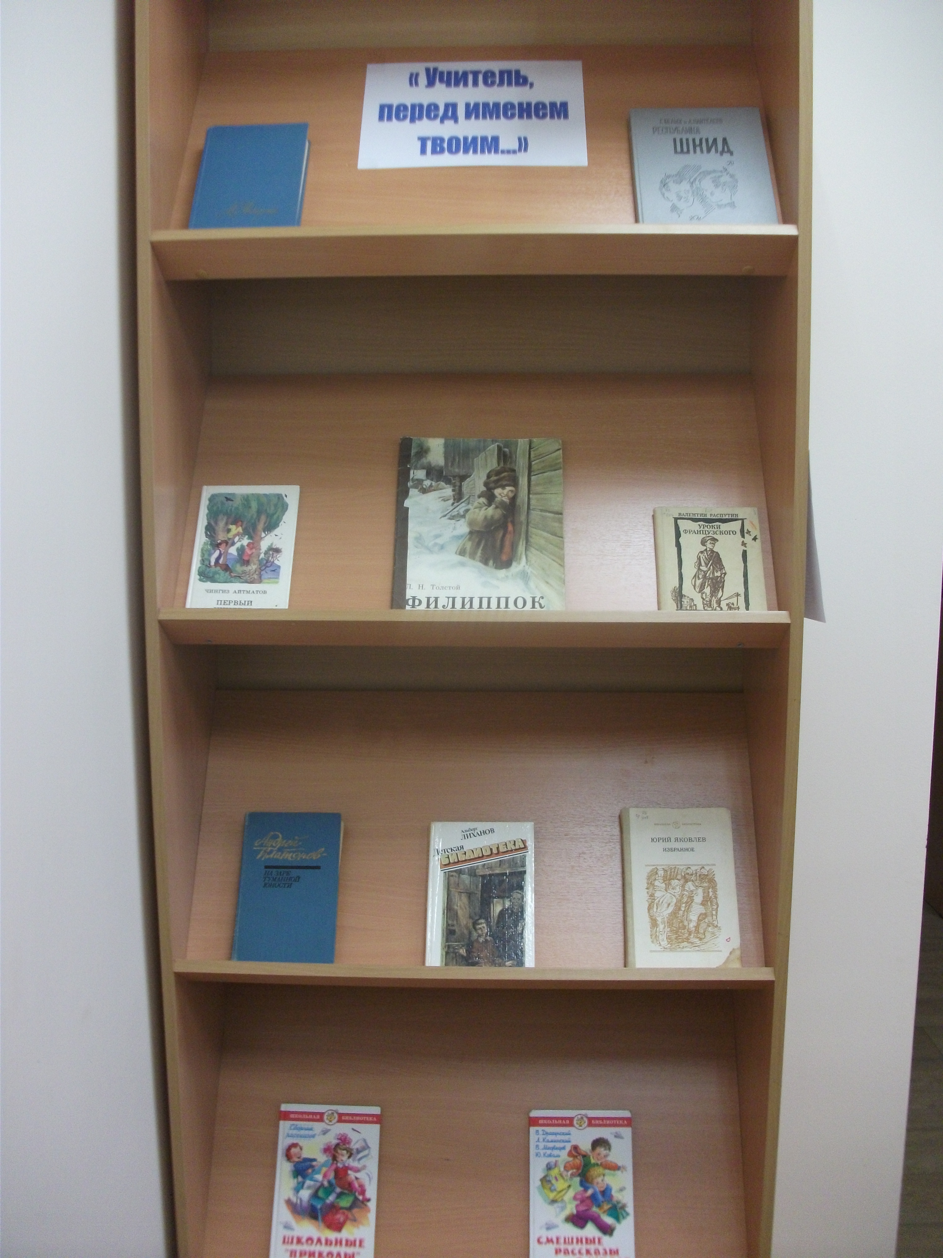 Про учителей и их труд написано немало стихов и песен, снято много кинофильмов. На книжной выставке «Учитель, перед именем твоим…» в библиотеке были представлены самые известные и просто любимые и добрые книги, посвященные школе и учителям.