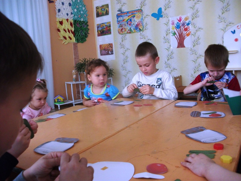 В начале занятия библиотекарь Шишова Е.Б. загадала загадки, посвященные овощам. Затем прочитала стихотворение Н.Семеновой «Спор овощей». Ребята с увлечением работали над аппликацией «Овощное ассорти». И самое главное, дети поняли, что овощи полезнее, чем конфеты и к тому же еще и вкуснее.