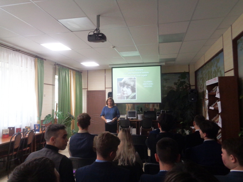 11 октября Центральная библиотека провела литературно – музыкальный час «Моим стихам настанет свой черед», посвященный жизни и творчеству Марины Ивановны Цветаевой для учащихся 11 классов школы №1.