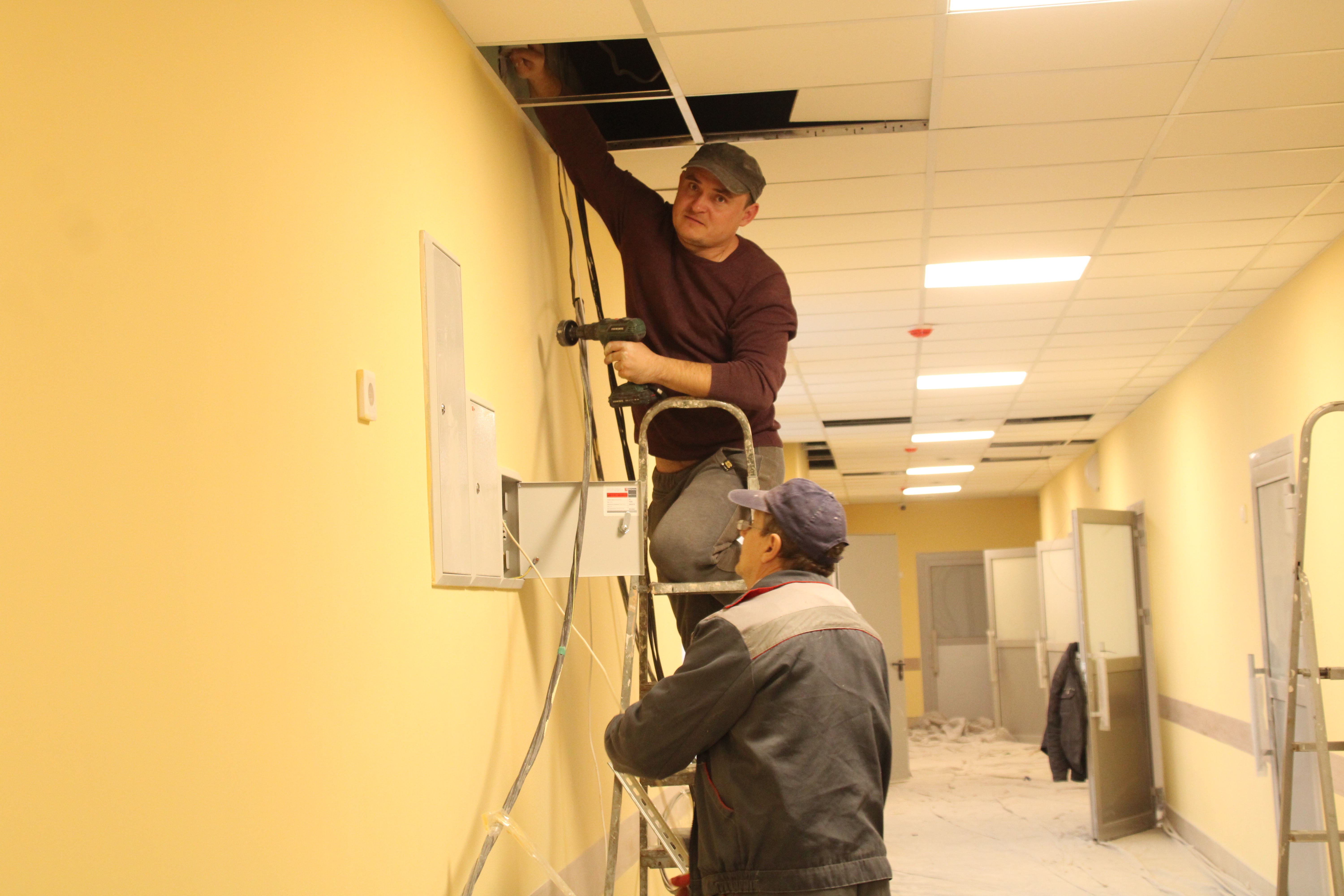 Сейчас продолжаются работы по капитальному ремонту детской поликлиники, фасада взрослой и детской поликлиник.