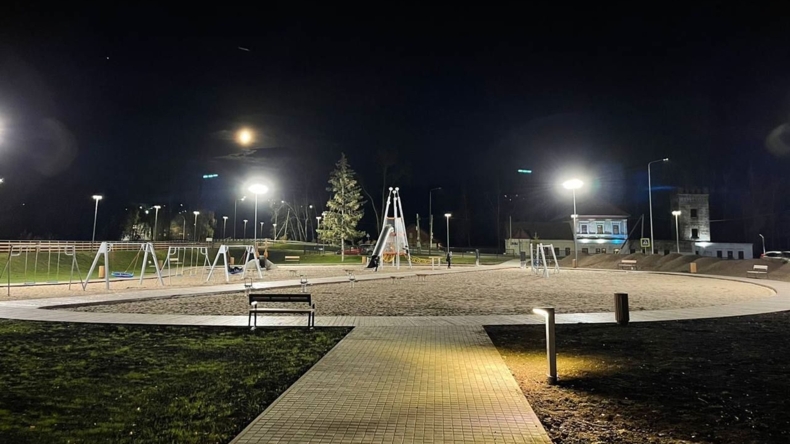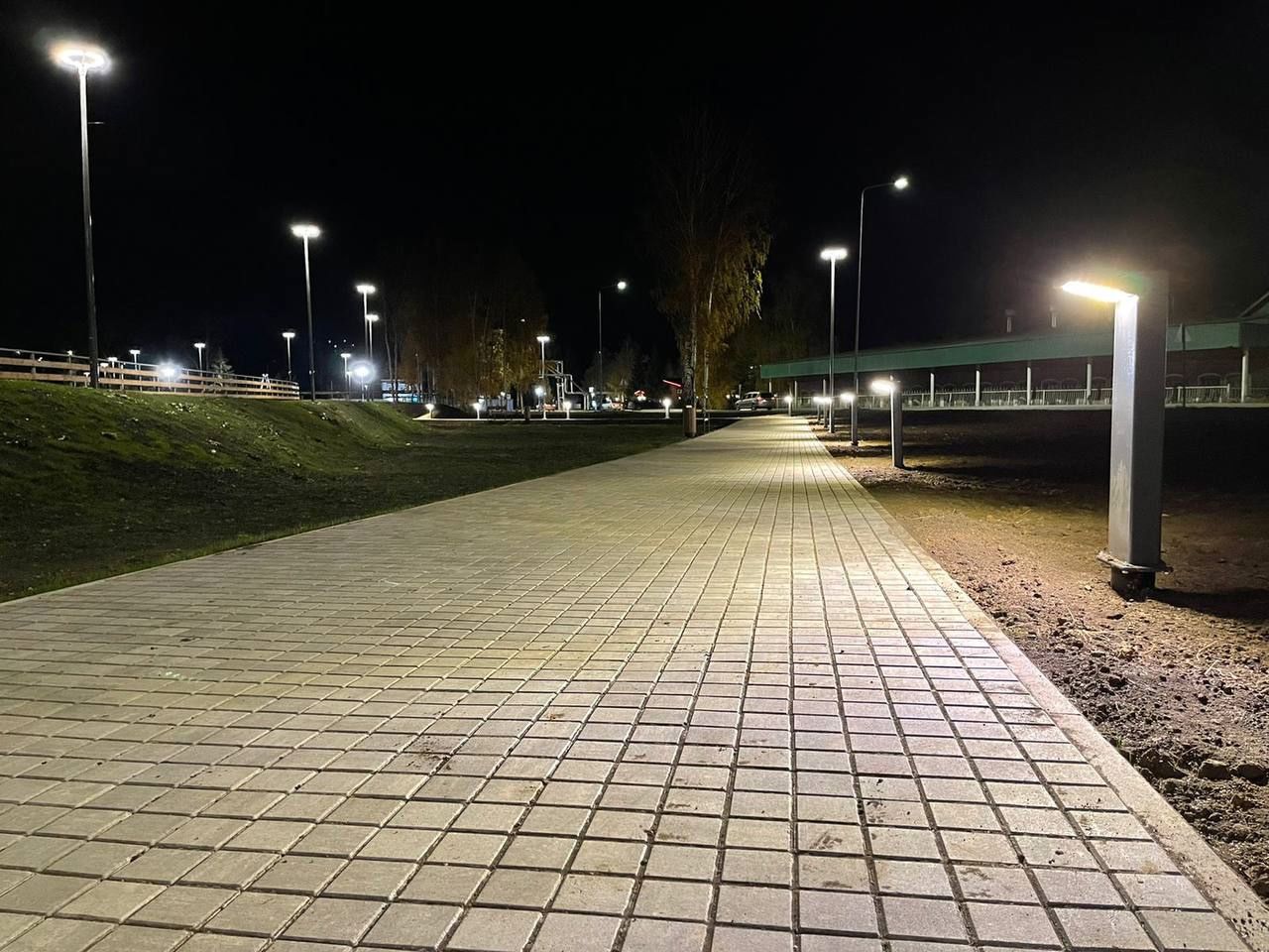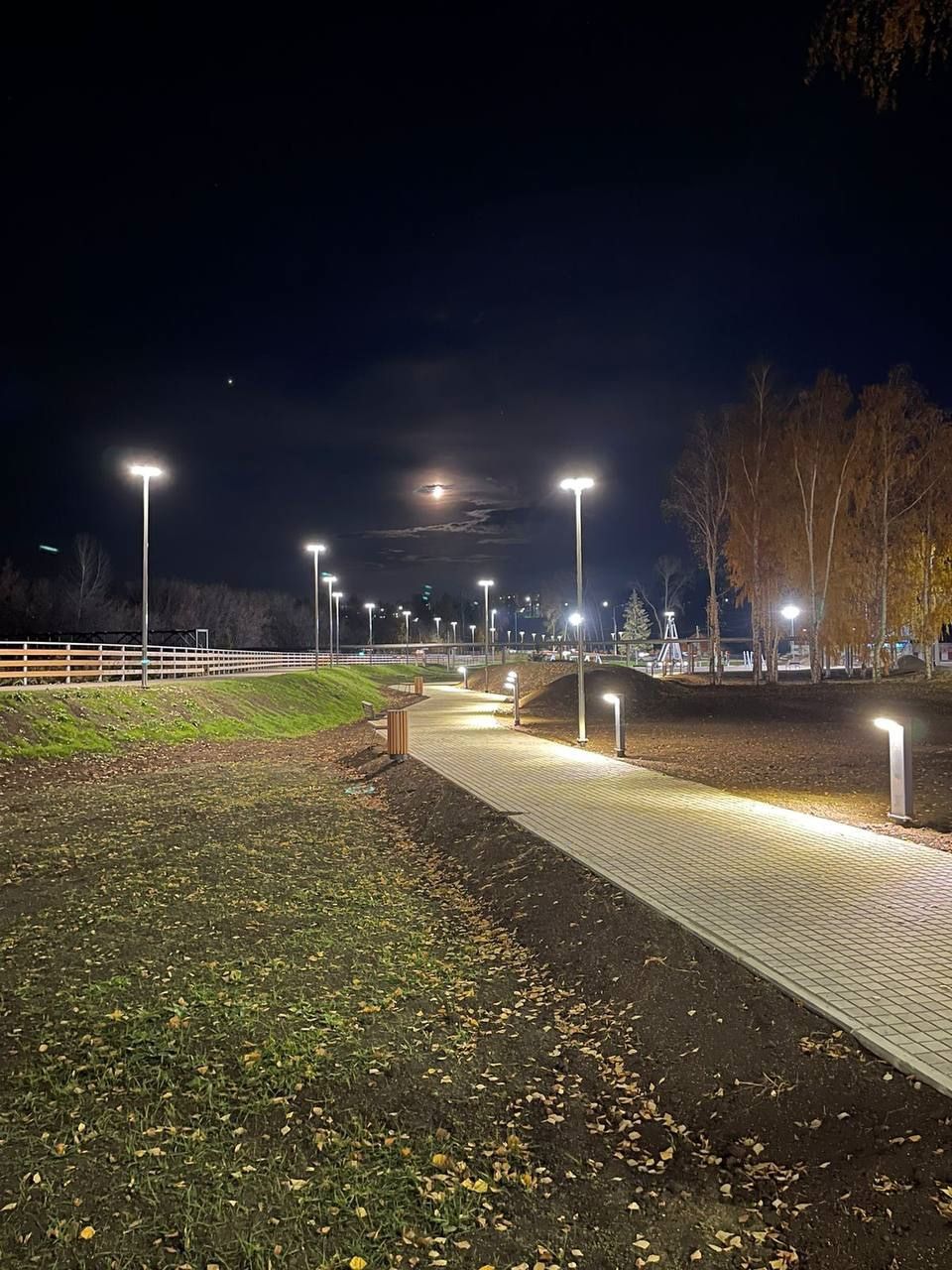 В парковой зоне установлено современное освещение, малые и большие светильники в рамках рамках пятой очереди благоустройства.