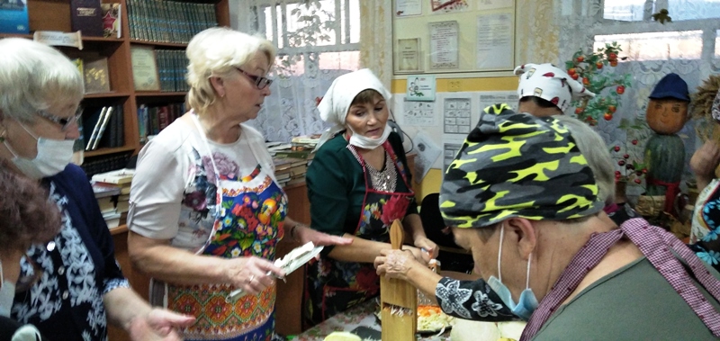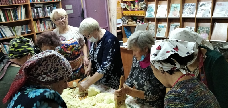Вначале библиотекарь познакомила с историей этого праздника. На Сергея Капустника на Руси рубили позднюю капусту, засаливая и заквашивая ее на зиму. Считалось, что солить капусту нужно не раньше первых заморозков, чтобы она получилась ядреной, хрустящей и хорошо хранилась. Капусту на Руси заготавливали всей семьей, привлекали к работе и детей и стариков. Гости от души пели любимые песни, частушки про капусту, провели шуточную викторину про капусточку, послушали стихи собственного сочинения поэтессы Коренек РН. После этого библиотекарь провела мастер-класс квашения капусты. Закончилось мероприятие чаепитием с традиционными пирогами с капустой.