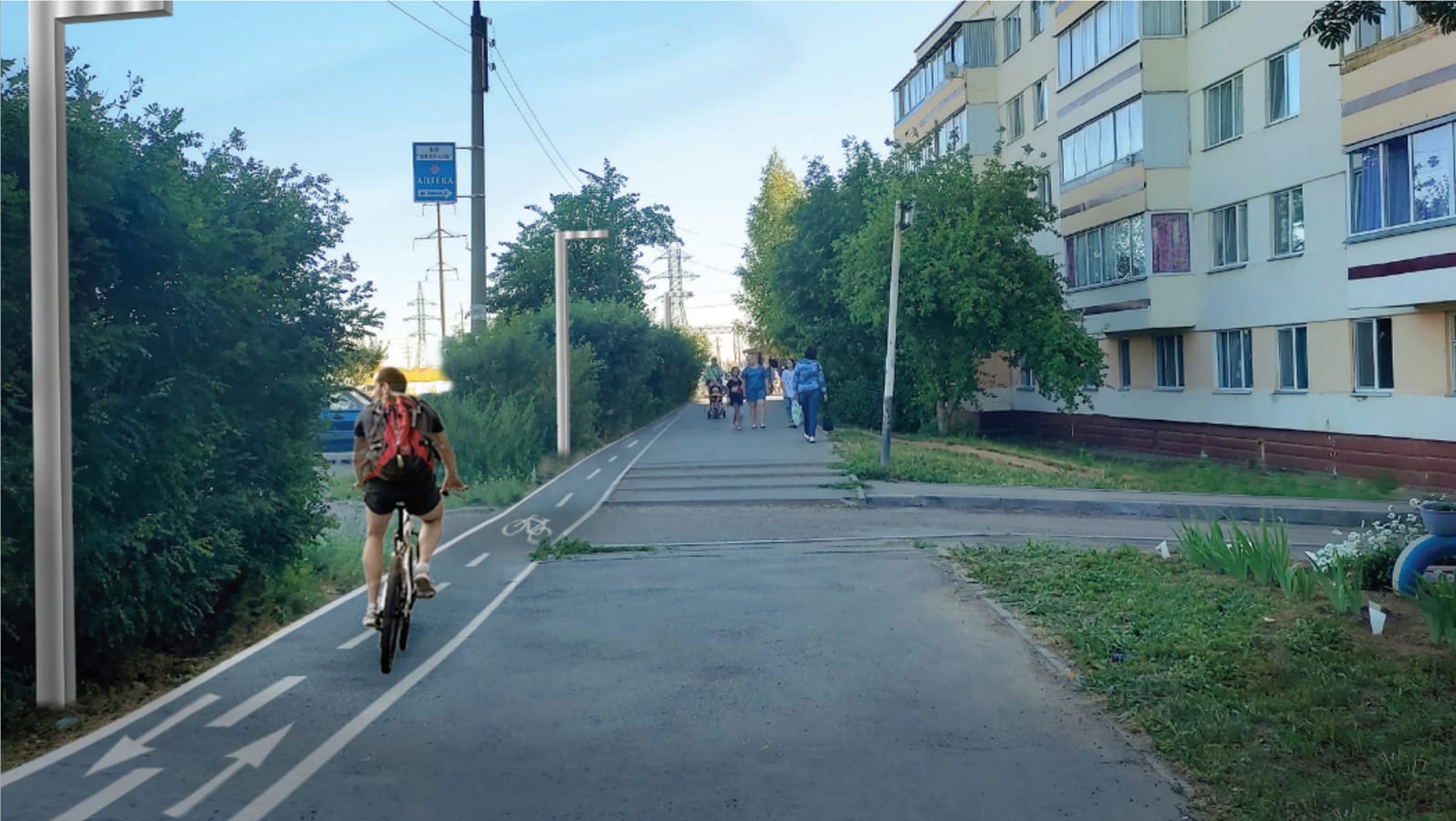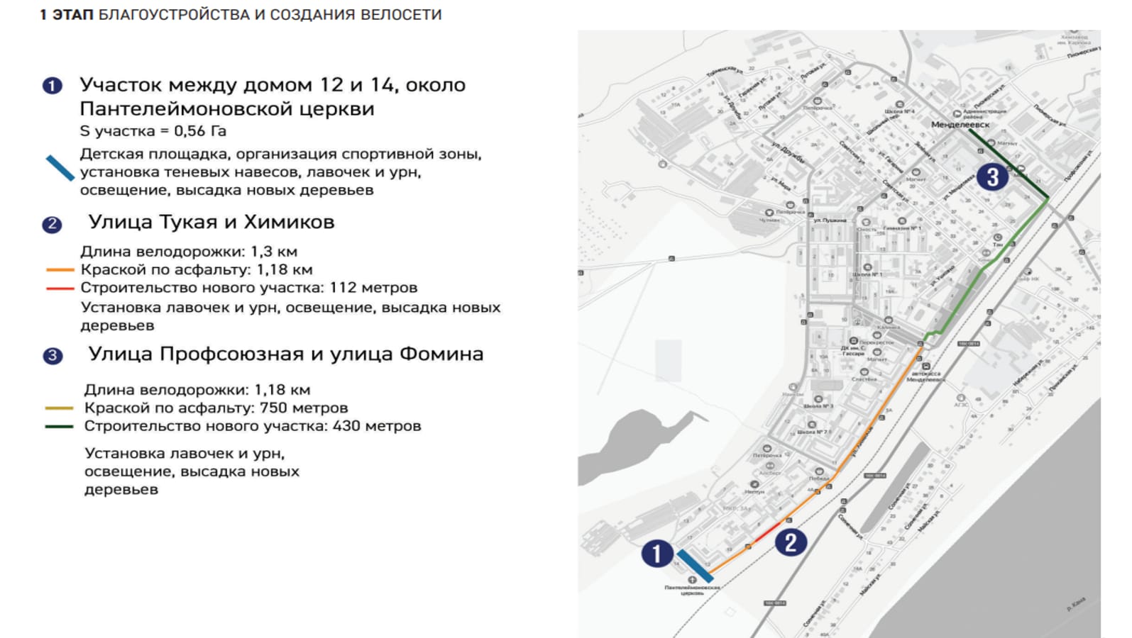 Вдоль дорожек по улицам Профсоюзная, Фомина, Тукая и Химиков для удобства и безопасности жителей и гостей города будет установлено новое современное освещение, удобные скамейки, урны, произведена высадка новых деревьев.