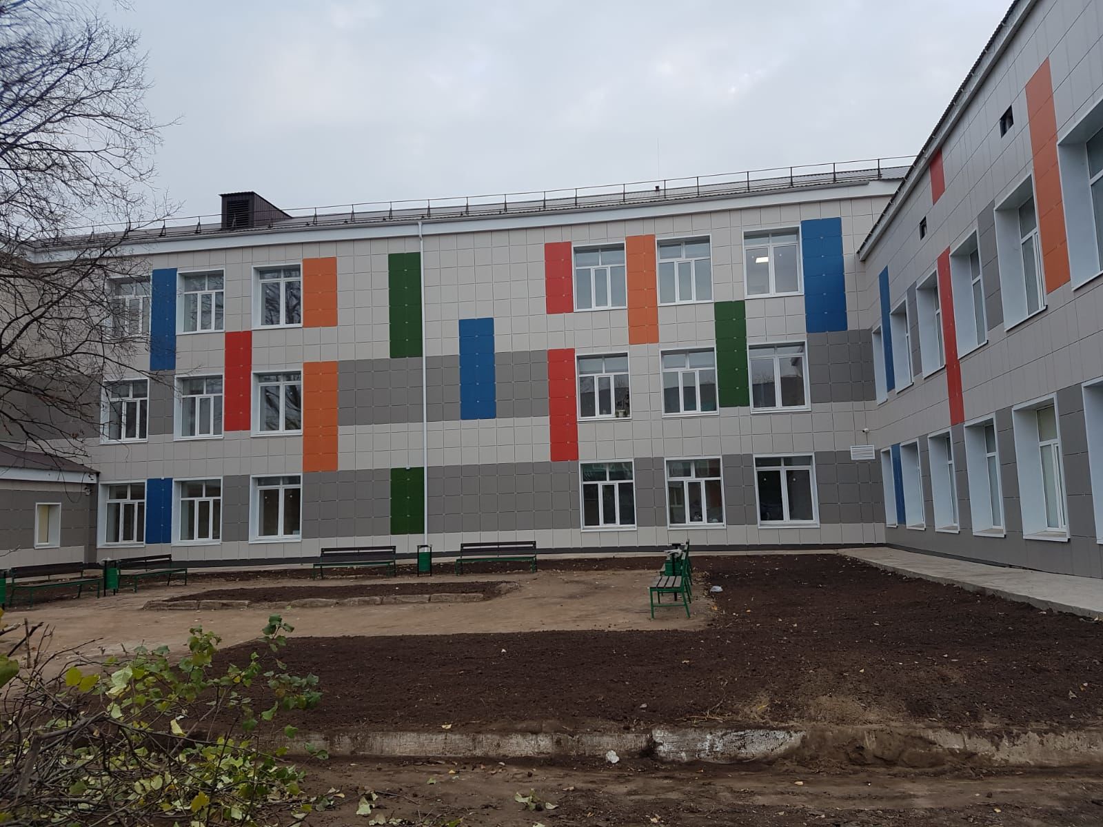 В настоящее время идет благоустройство прилегающей территории, установлены скамейки, урны, засеяны газоны. Капитальный ремонт детской поликлиники Менделеевской ЦРБ планируют завершить в ноябре.