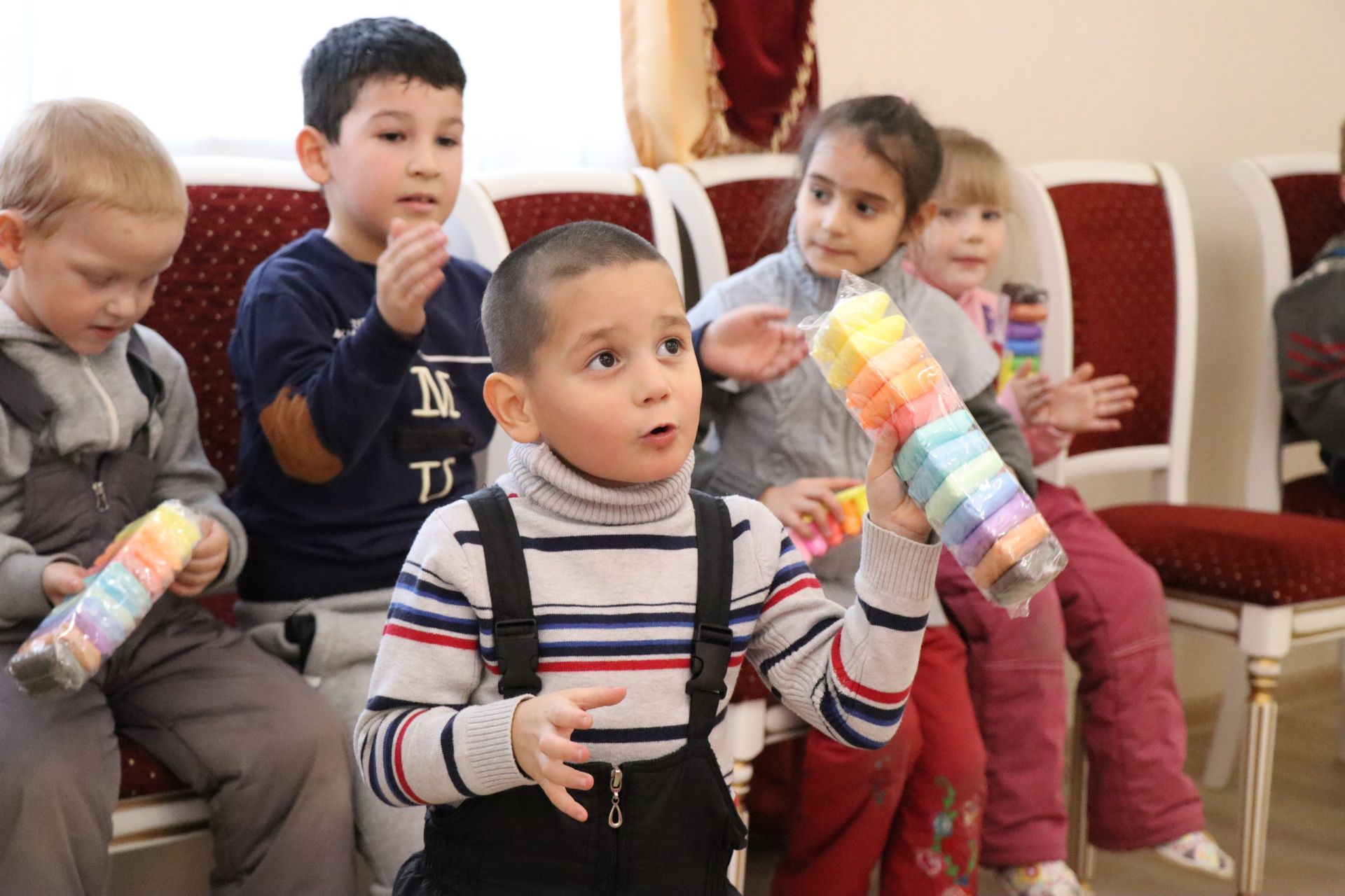 Приветствовали ребят из «Камских зорей» начальник Отдела ЗАГС Татьяна Алексеева и руководитель детского центра «Островок» Надежда Русакова. В гости к детям пришла обворожительная Пинки Пай. Она провела с воспитанниками весёлые игры, зажигательные танцы. Море эмоций и восторга вызвала блестящее и искрящееся конфетти. В завершение ребята получили в подарок разноцветный слайм.