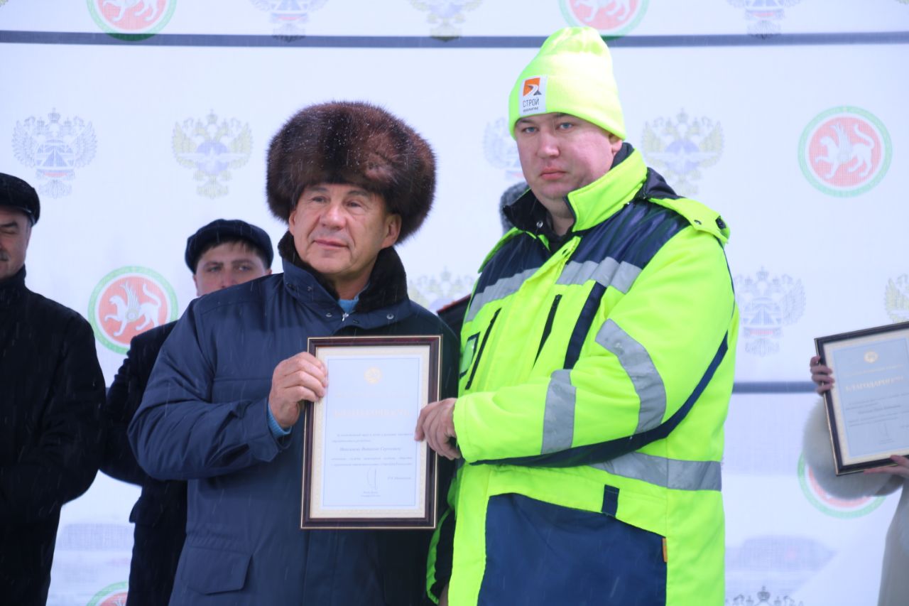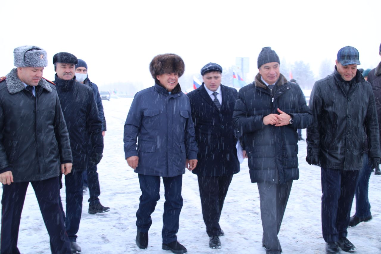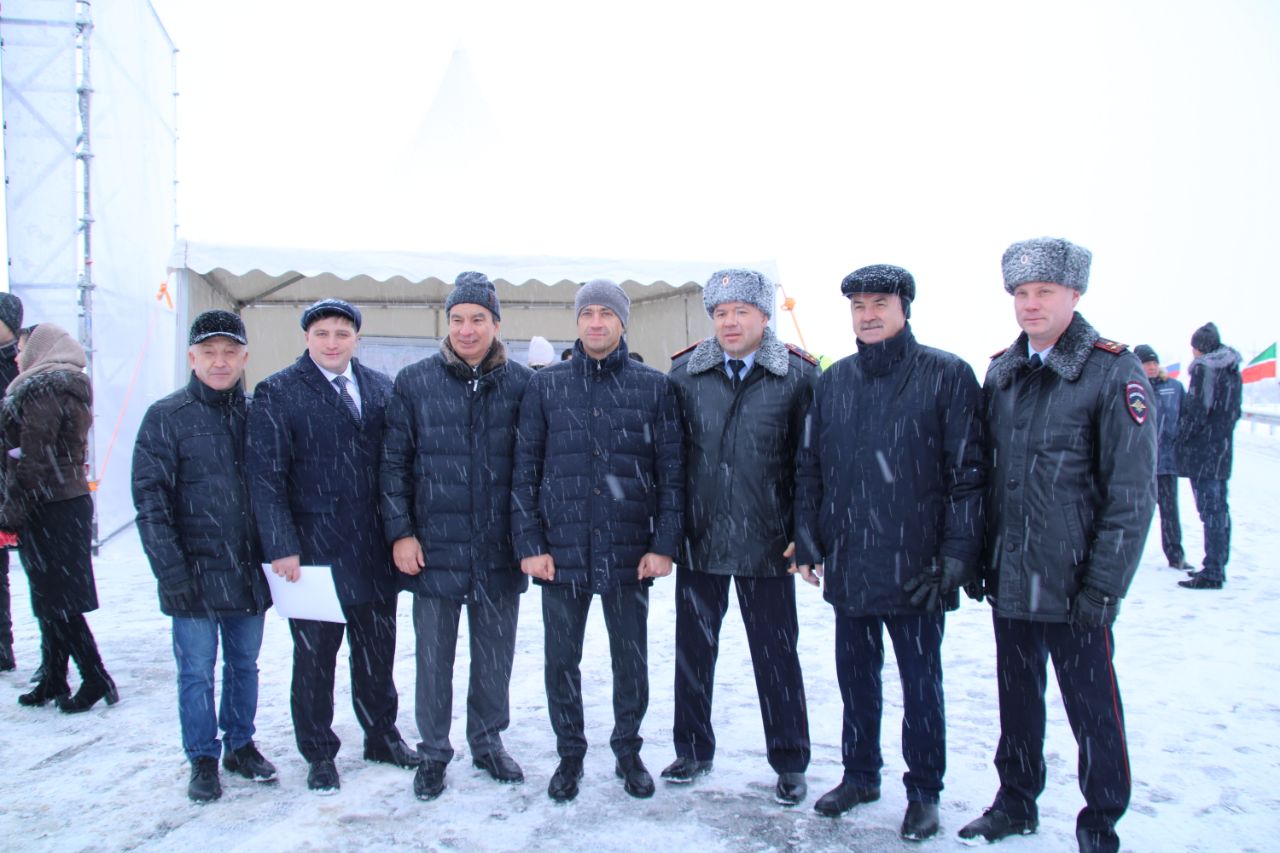 В мероприятии приняли участие Президент республики Рустам Минниханов, заместитель руководителя Федерального дорожного агентства Андрей Самарьянов, руководитель Менделеевского района Радмир Беляев, министр транспорта и дорожного хозяйства Татарстана Фарит Ханифов и начальник Управления ГИБДД МВД по республике Ленар Габдурахманов.