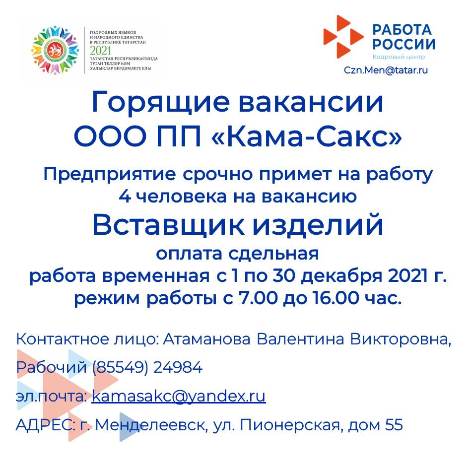 Горящая вакансия ООО ПП "Кама-Сакс"