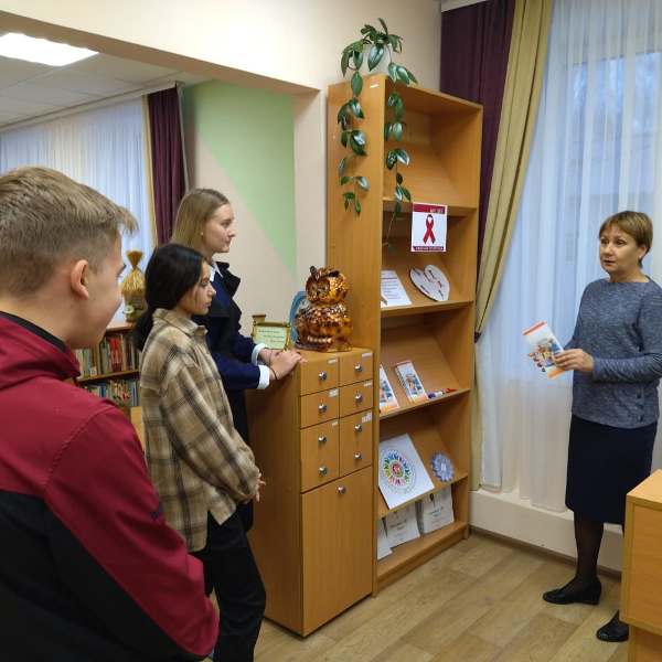 Ленточка цвета крови, свёрнутая петелькой, является Международным символом борьбы со СПИДом – символом нашего сострадания, поддержки и надежды на будущее без СПИДа. Этот символ неравнодушия, завоевавший огромную популярность во всём мире. Всем посетителям библиотеки в этот день были розданы буклеты с информацией об инфекции и мерах ее предотвращения. В знак солидарности с людьми, которых затронула эпидемия, и поддерживают усилия по борьбе с ВИЧ-инфекцией по всему миру, на сердце были прикреплены красные ленточки - символ борьбы со СПИДом.