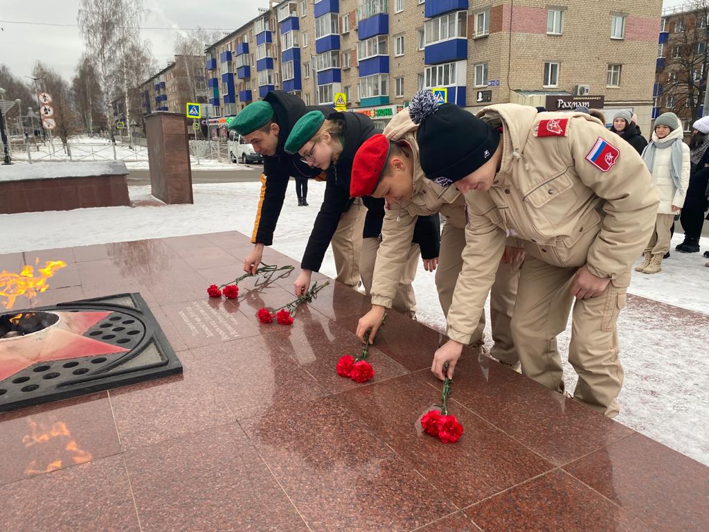 Затем по всей школе была объявлена минута молчания в память всех погибших в годы войны. Юнармейцы школы возложили цветы к Памятнику Неизвестному солдату. Для учащихся старшего звена в кинотеатре «Юность» был организован показ художественного фильма «Звезда» в рамках реализации программы «Пушкинская карта».