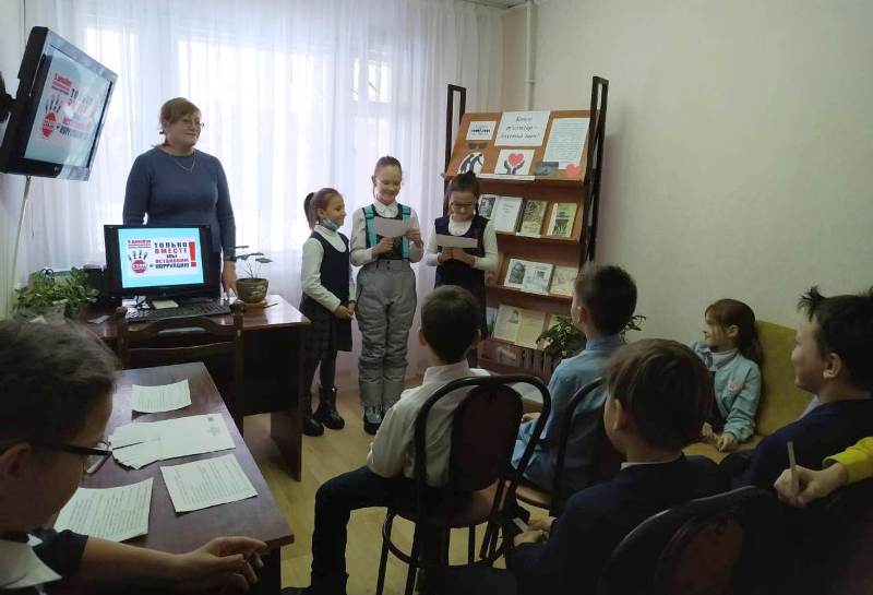 В Татарской библиотеке состоялся информационный час, посвященный Международному дню борьбы с коррупцией, с учащимися 4 класса школы №7. (Преподаватель Аминова Г. Ф.)