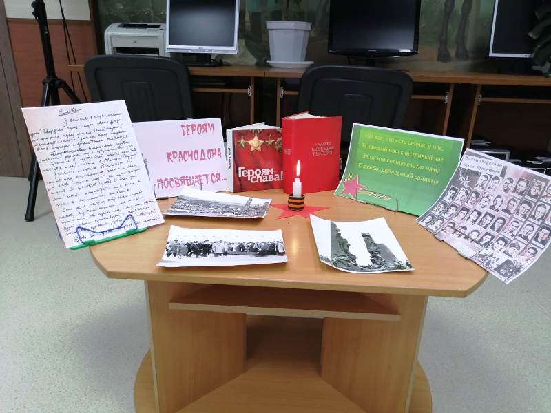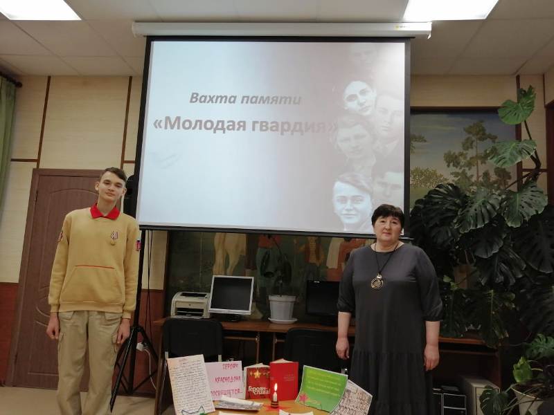 На мероприятии ребята узнали об истории создания «Молодой гвардии», которая была создана вскоре после оккупации города Краснодон и насчитывала около 110 участников – юношей и девушек. Самому младшему участнику подполья было 14 лет. Мужественно и героически они сражались с врагом, организовывая диверсии, распространяя информационные листовки о правдивых событиях на фронте, спасали от фашистской неволи и смерти советских солдат и мирных жителей, и этим ежедневно приближая Великую Победу. Каждый прожитый ими день был подвигом! Зимние дни напоминают о трагических событиях 1943 года. 15, 16 и 31 января были казнены большинство участников подпольной организации – немецкие оккупанты сбросили молодогвардейцев в шурф краснодонской шахты №5". В читальном зале была оформлена книжная выставка «Героям Краснодона посвящается…». Учащиеся почтили память молодогвардейцев минутой молчания. Подвиг молодогвардейцев навсегда останется в памяти народной.