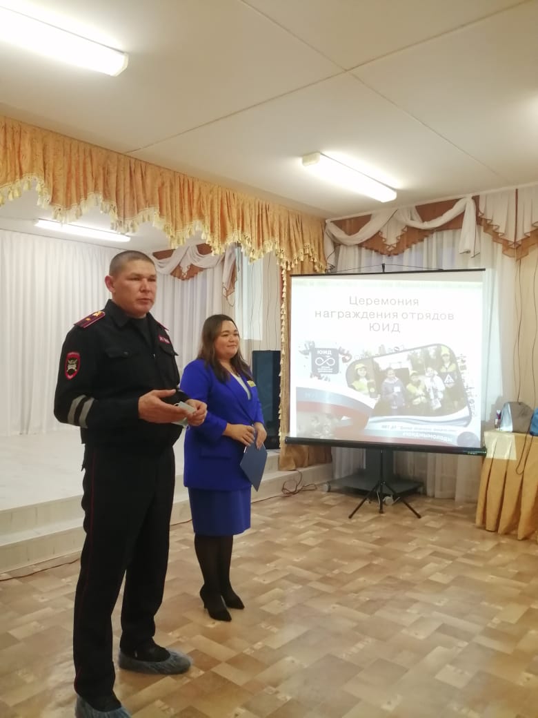 Далее прошла церемония награждения победителей, а также призеров районных конкурсов за 2021 год, таких как: «Безопасное колесо-2021», «Лучший отряд юных инспекторов движения по итогам 2020-2021 учебного года и лучший руководитель», «Дети рисуют страну», «Олимпиада по БДД -2021». Всем победителям и призерам были вручены подарки, дипломы, грамоты, кубки.
