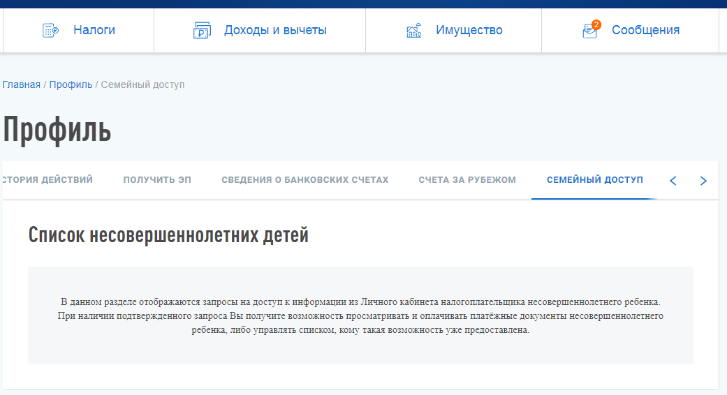 Раздел размещен в разделе «Профиль» во вкладке «Семейный доступ»: