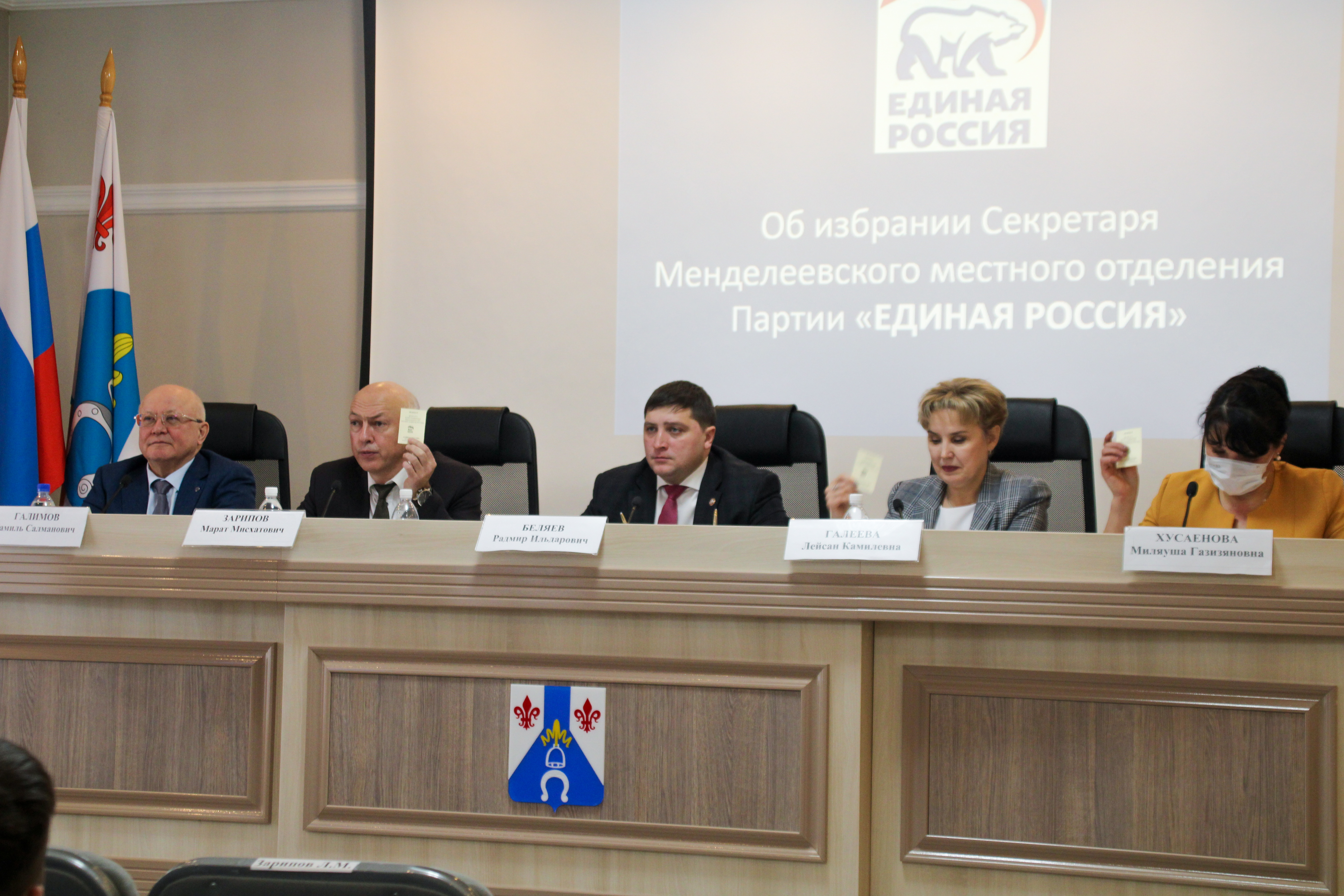 Тайным голосованием единогласно был избран секретарём местного отделения партии "Единая Россия" Радмир Беляев - руководитель Менделеевского района.