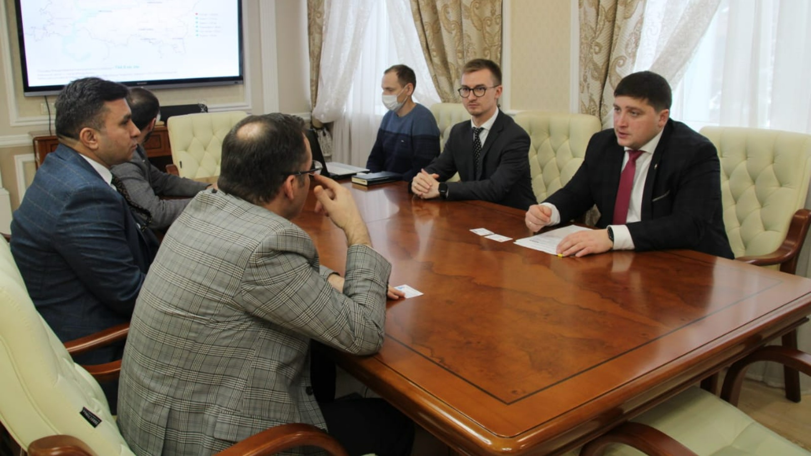 Руководитель района Радмир Беляев совместно с Ленаром Ахметовым - и. о. заместителя руководителя Исполкома по экономике, ТОСЭР и развитию предпринимательства познакомились и пообщались с гостями из Турции.