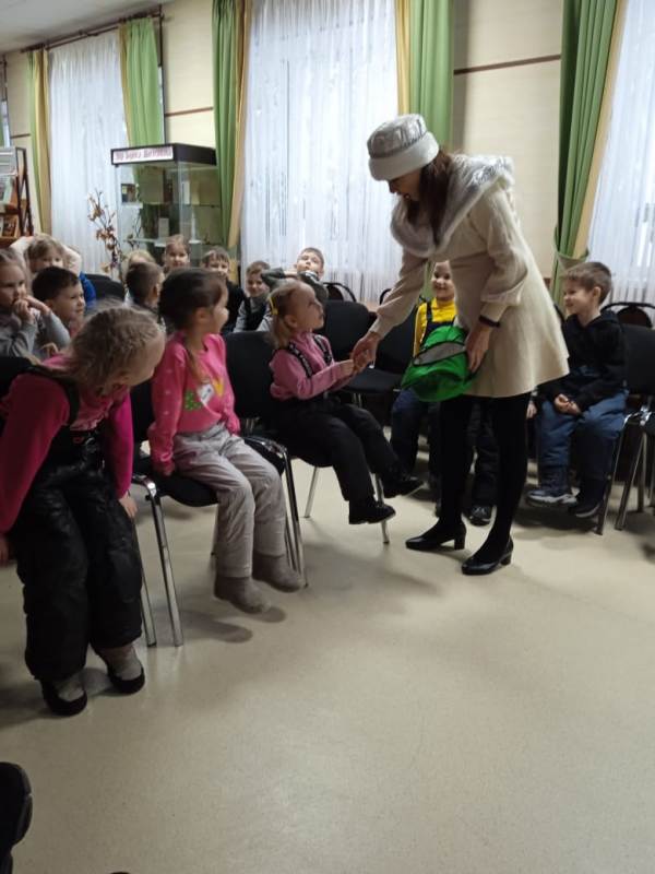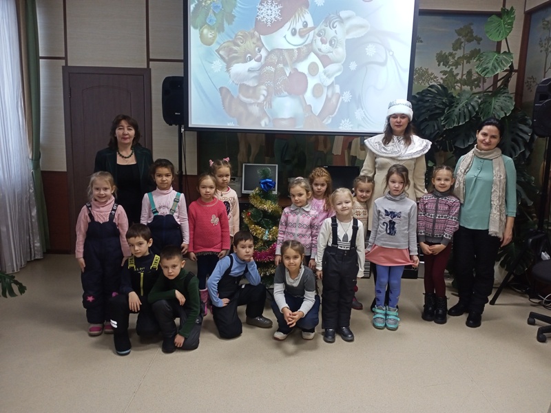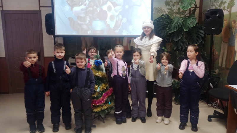 Библиотекарь Детской библиотеки Казакова Л.М. вышла к ребятам в образе Снегурочки, загадала им новогодние загадки. Далее Снегурочка нашла волшебную шляпу из страны Шляпляндии, которая могла превратить присутствующих в кого угодно. Дети с удовольствием выполняли задания шляпы. В заключение встречи посмотрели мультфильм.