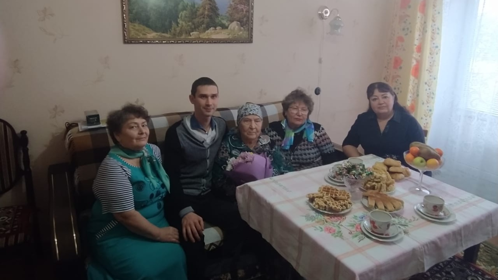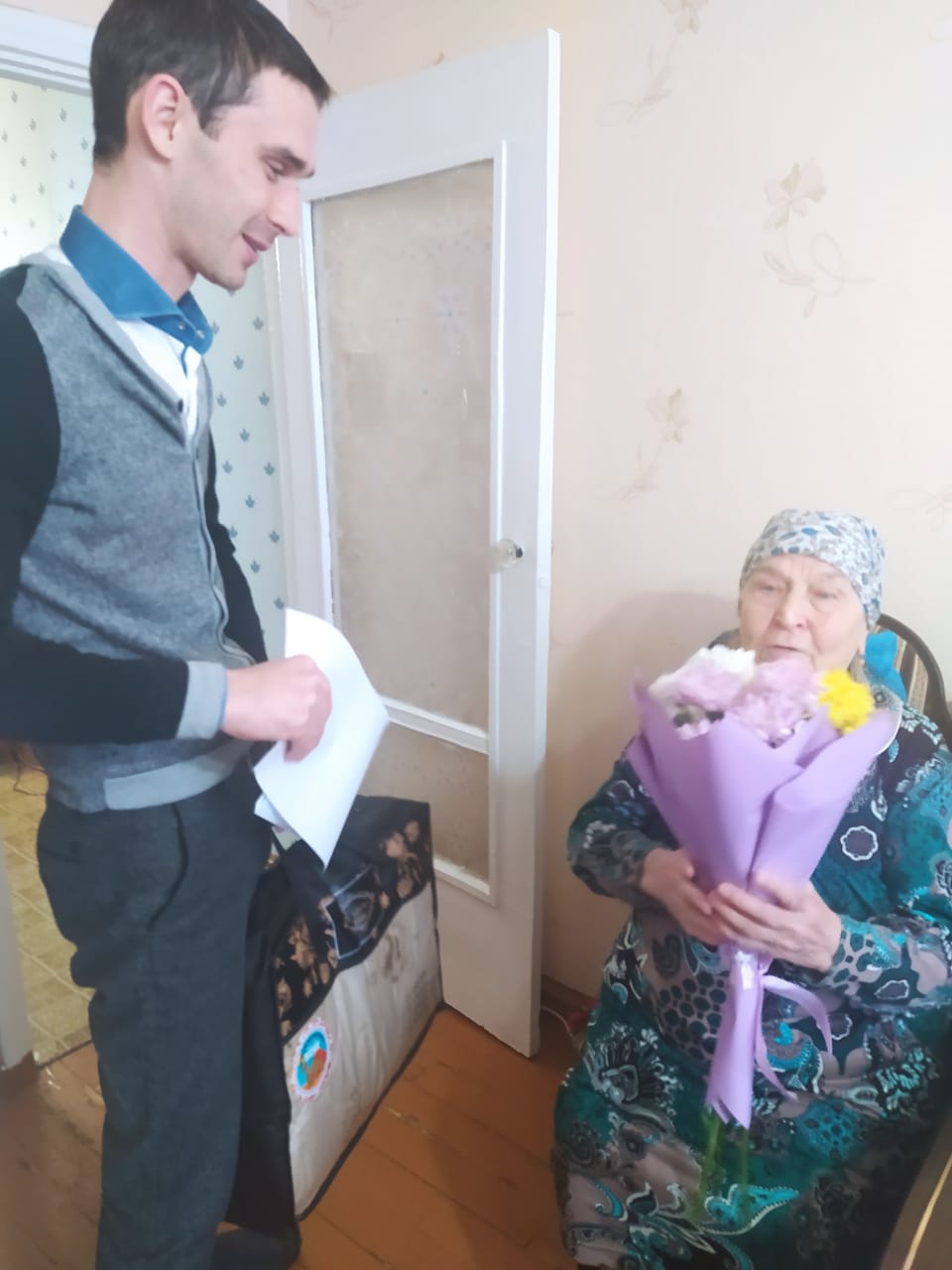 С большим юбилеем от имени первого Руководителя района Радмира Беляева поздравил Розу Хасановну руководитель аппарата администрации района Роберт Искандаров, и председатель Совета ветеранов (пенсионеров) Лариса Кривилева.