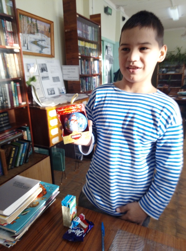 Вращая барабан, дети с удовольствием отгадывали загадки, вспоминали пословицы, поговорки, решали ребусы, выполняли различные задания на новогоднюю тематику. Игра прошла в атмосфере праздника, все дети получили сладкие призы и заряд хорошего настроения. Победителем игры стал Миннигулов Ранис, который смог ответить на непростые вопросы игры.