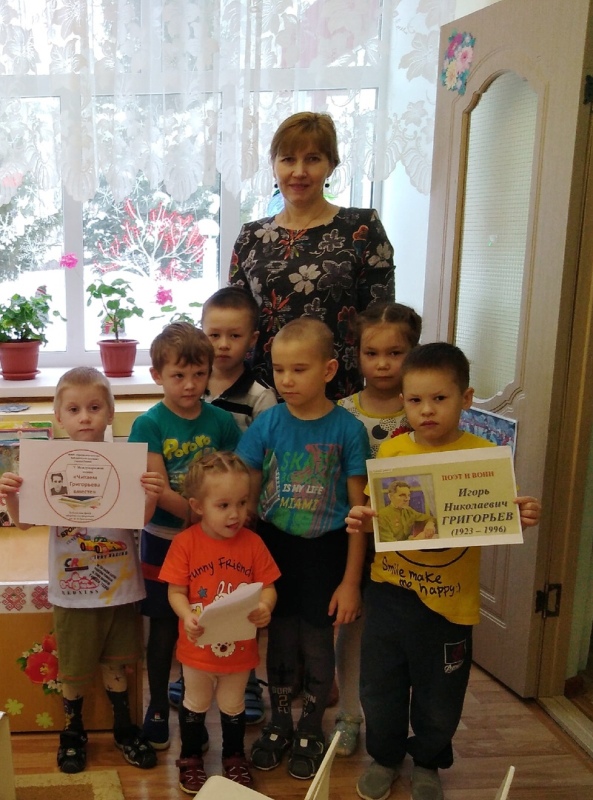 Юные участники МБДОУ узнали о замечательном поэте Псковской земли Игоре Григорьеве, каким он был необыкновенным человеком, которому была свойственна доброта и человечность. В рамках акции прошли громкие чтения «Поэт и воин И.Григорьев». Дети с большим интересом услышали его стихотворение «На озере», из которого узнали, каким озеро бывает в определенный месяц года. Но, к сожалению, в нашей библиотеке нет ни одного сборника Игоря Григорьева. Тем не менее с удовольствием познакомили ребят с творчеством псковского поэта—воина. Было интересно узнать о фактах его биографии, о вехах его военного пути.