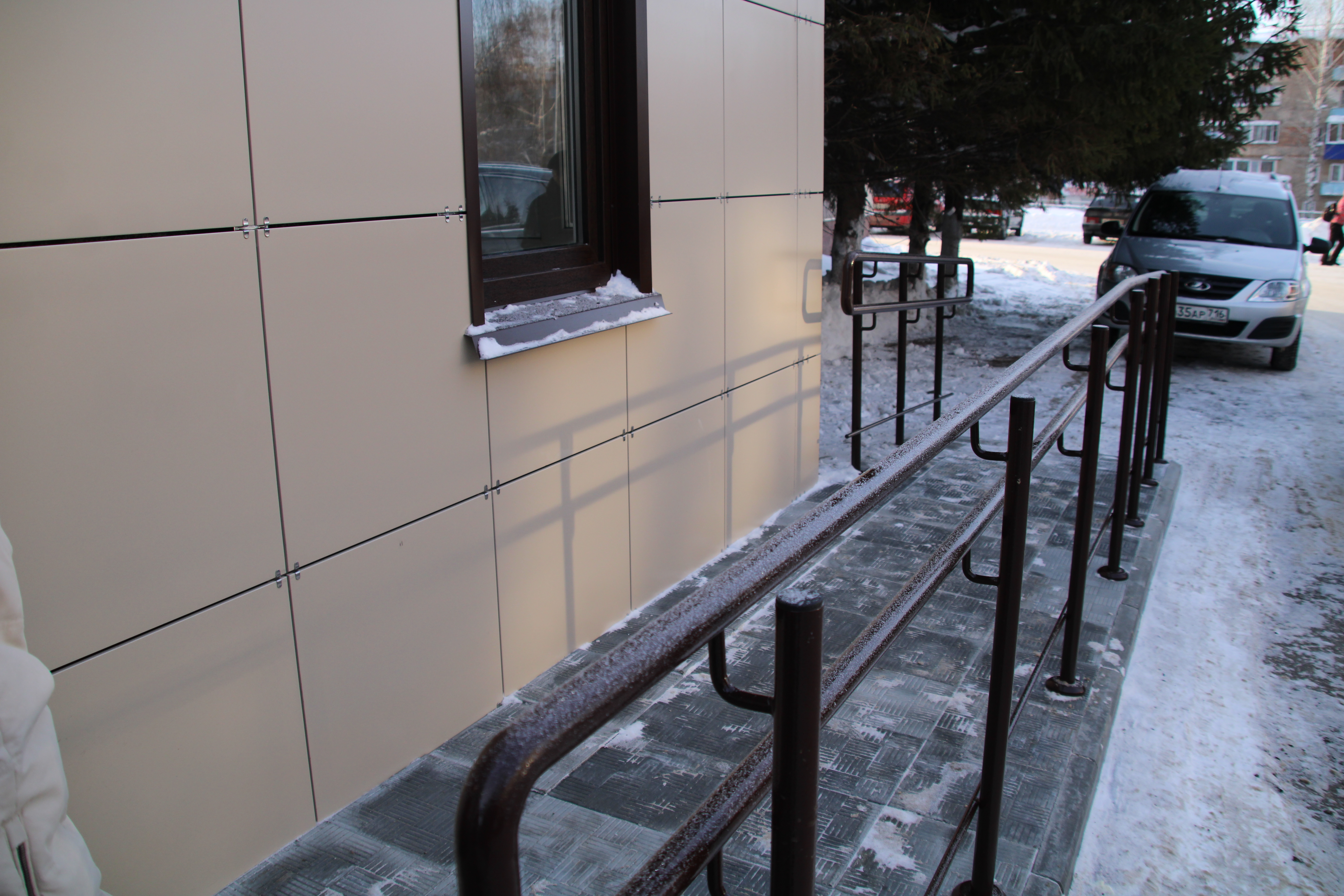 Здесь обновилась полностью входная группа, улучшилась система работы службы охраны, также обеспечен свободный доступ для мужественных людей, добавлено уличное освещение.