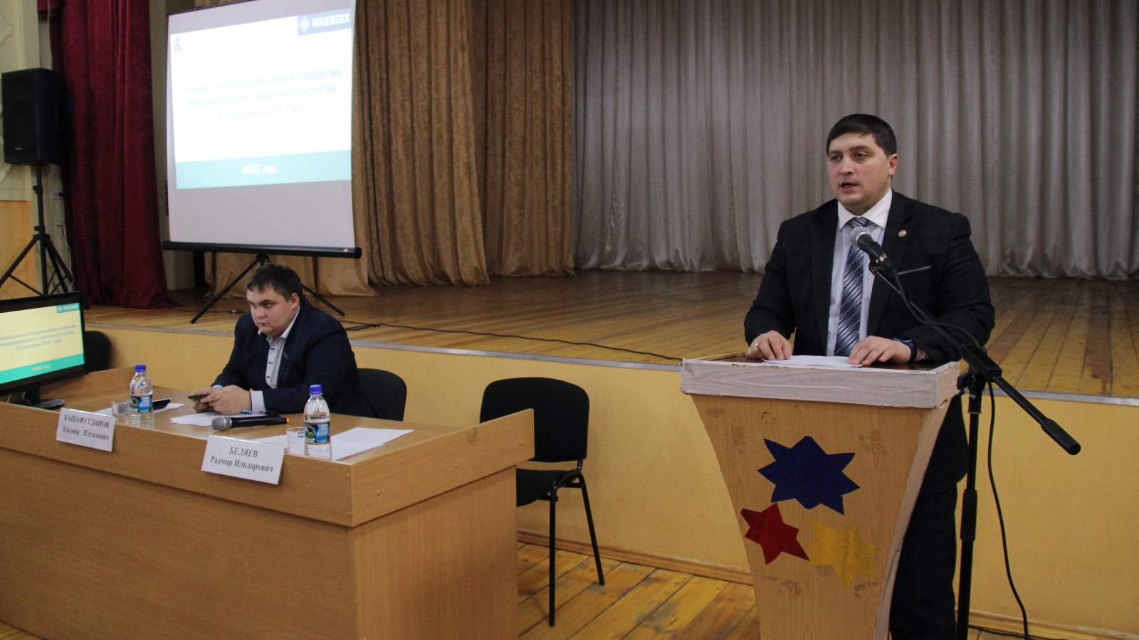 Далее Руководитель района Радмир Беляев ознакомил жителей с итогами развития Менделеевского района за 2021 год и задачами, планами на текущий год.