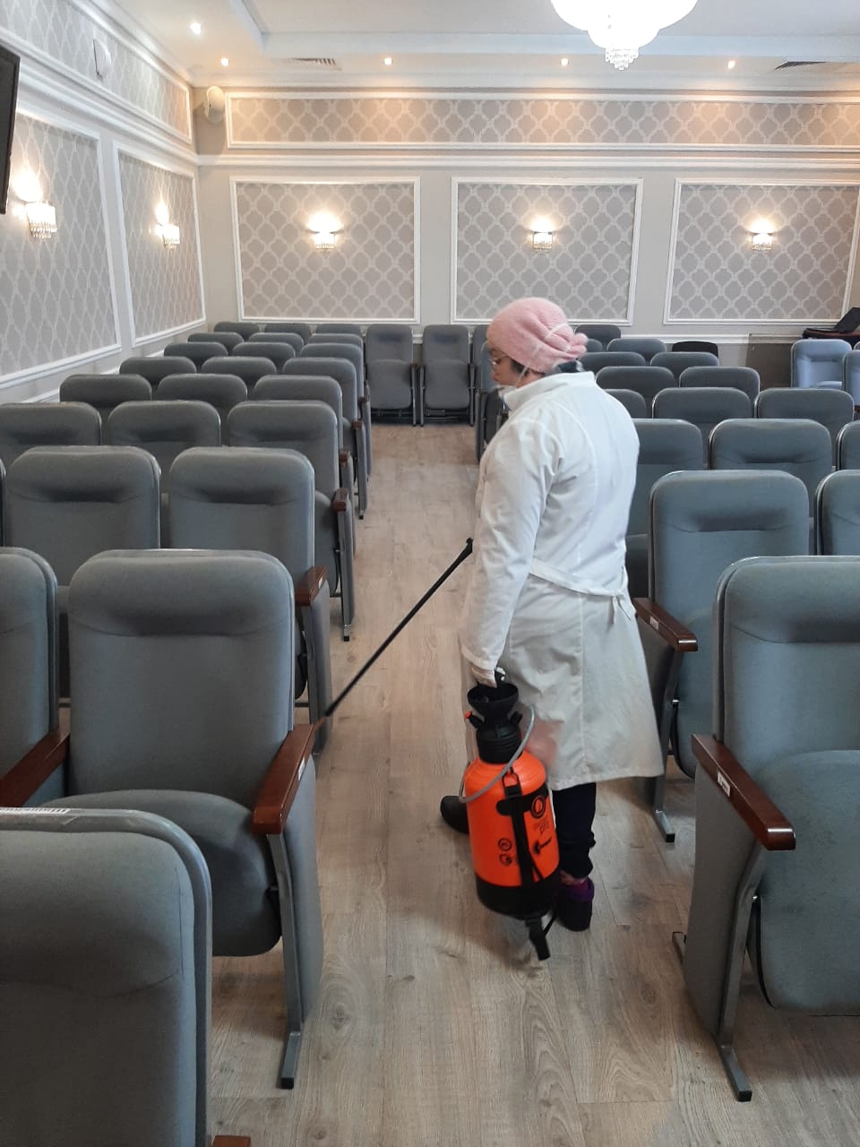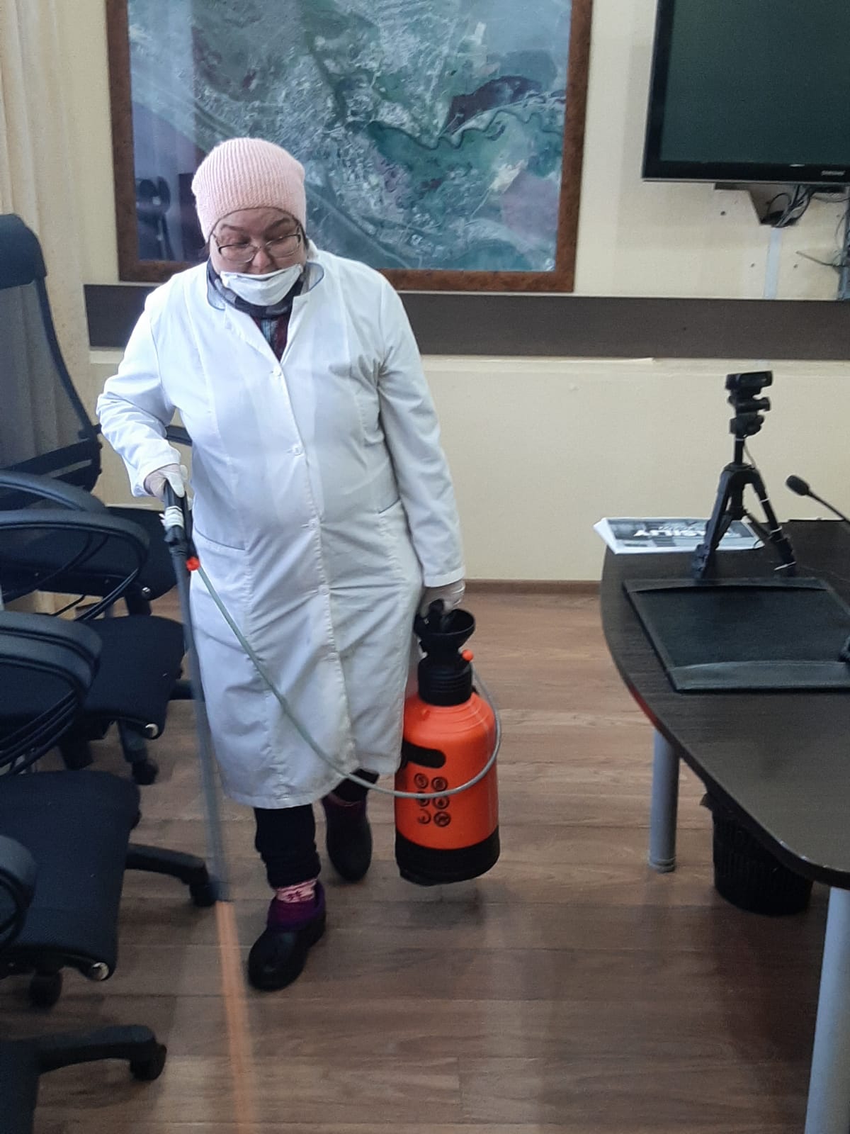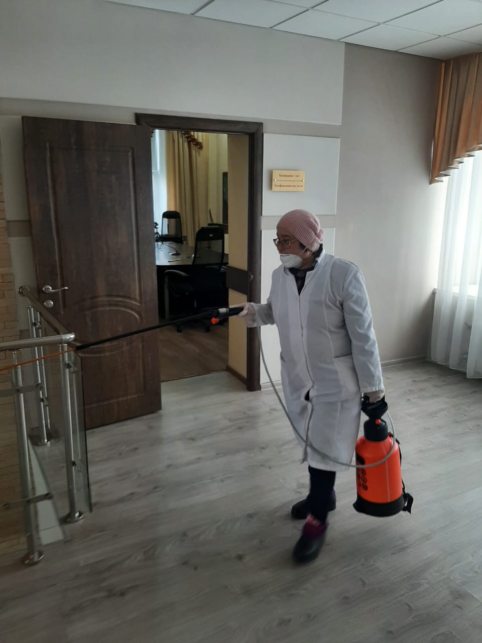 В целях предупреждения распространения коронавирусной инфекции в зданиях администрации и Исполнительного комитета проведена санитарная обработка.