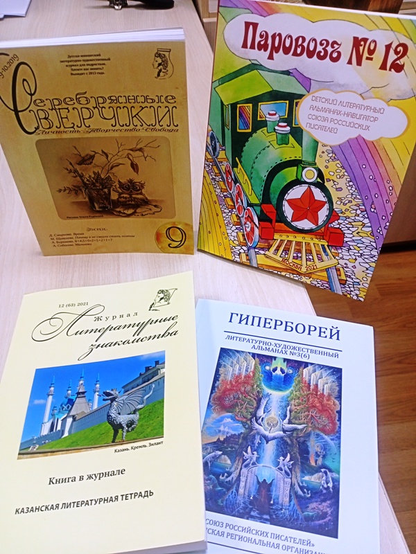 Вера Петровна привезла с собой подарки. Новый детский литературный альманах – навигатор союза российских писателей «Паровозъ №12», который получат все библиотеки района. Журнал «Литературное знакомство», литературно – художественный альманах «Гиперборей», детско-юношеский литературно – художественный журнал для подростков «Серебреные Сверчки». Благодарим нашего друга, замечательного человека за доброе отношение и любовь к читателям и библиотекам.