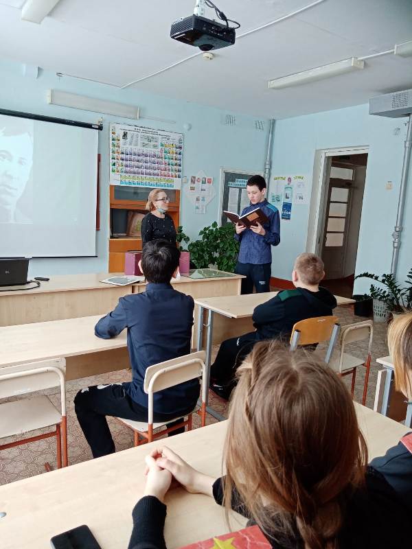 Библиотекарь Г. Галимуллина познакомила с биографией поэта. Ученики прочитали стихи М. Джалиля. Выросло уже не одно новое поколение, которое знает о войне лишь по книгам и фильмам. Но никогда не померкнет в веках подвиг Мусы Джалиля. Образ поэта-героя, не покорившегося "сорока смертям", дорог людям всего мира, всем, кто ненавидит войну, фашизм, всем, кто ценит отвагу и благородство.