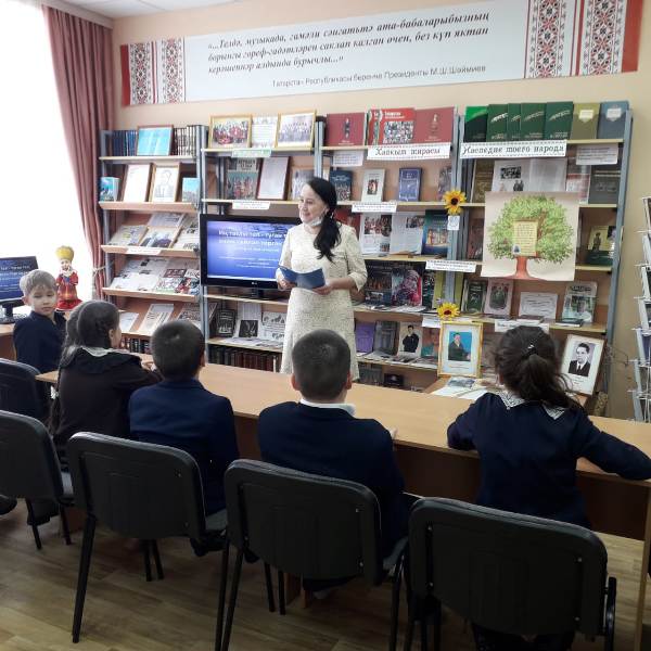 В Старо-Гришкинской сельской библиотеке к Международному дню родного языка совместно с учащимися начальных классов (учительница Иштанова А.М.) провели литературный час «Ручей хрустальный языка родного: Туган телнең бәллүр чишмәсе».