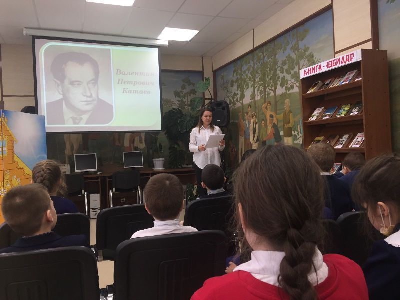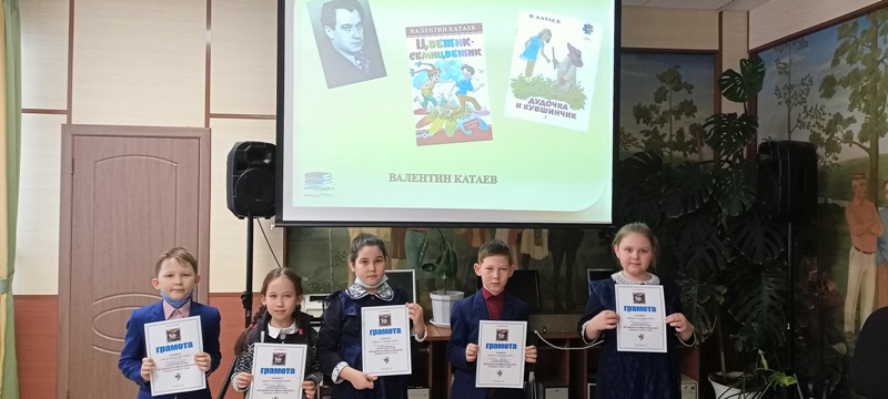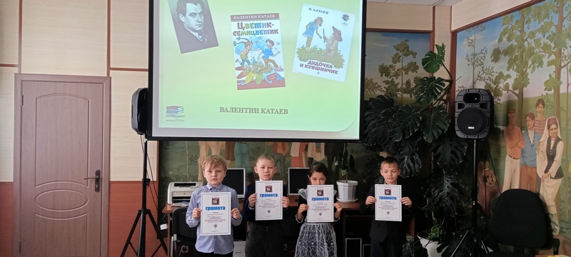 Библиотекарь Казакова Л.М. рассказала ребятам некоторые факты из жизни Валентина Катаева и задавала вопросы по его сказкам. Самым активным участникам были вручены грамоты.