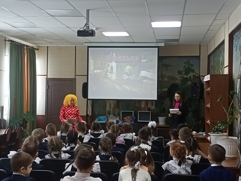 В Детской библиотеке прошла интерактивная игра «Весёлая встреча с домовёнком Кузькой» для учащихся 2 «В» класса (кл.рук.Капрош Н.А.) школа №1.