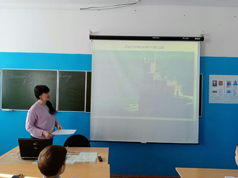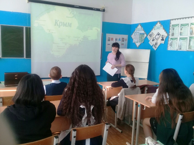 18 марта в Псеевской СОШ библиотекарь Яраханова Р.Р. совместно с учительницей русского языка и литературы Зигангареевой А.С. провели для учащихся 6 класса познавательный час "Путешествие по Крыму", посвященный 8-й годовщине вхождения Крыма в состав РФ.