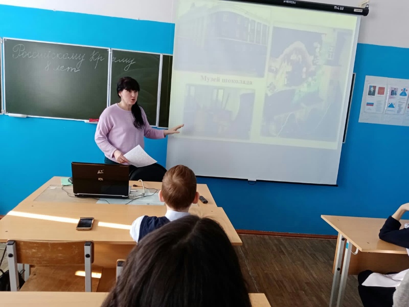 Библиотекарь познакомила ребят с богатой историей полуострова Крым, с древними историческими памятниками, достопримечательностями. Совершили увлекательную виртуальную экскурсию по красивым местам Крыма, где стоит обязательно побывать, будучи в Крыму. Ученица Илона Шашкова в прошлом году с родителями съездила в Крым. Она тоже поделилась своими впечатлениями о поездке в Крым. Встреча была интересной и познавательной.