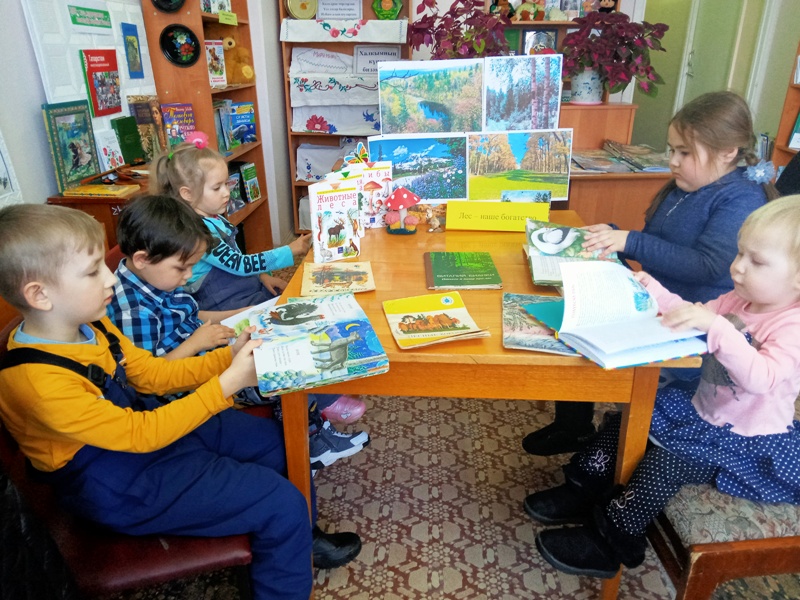 Библиотекарь рассказала детям о лесе - нашем зелёном друге, вспомнили основные правила поведения в лесу. Затем дети отгадывали загадки, посвященные лесу и его обитателям. Им была интересно, кто в лесу живет, и что в лесу растёт ?.В конце мероприятия подвели итог и узнали, кто из детей лучше всех знает лес и лесных обитателей. К мероприятию была подготовлена книжная выставка «Лес – наше богатство», проведен обзор литературы.
