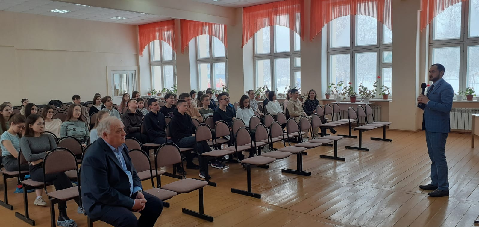 Сегодня заместитель руководителя Исполнительного комитета Ленар Ахметов провел встречу с учениками 10 и 11 классов школы №1.