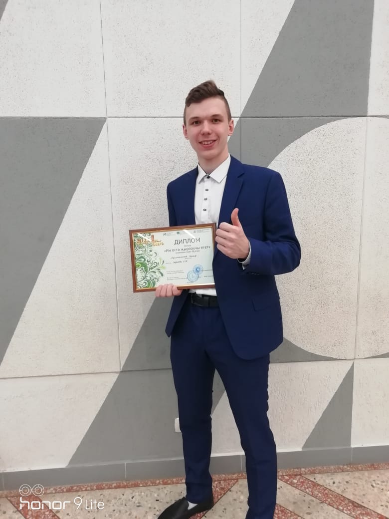 Компетентное жюри по достоинству оценило прекрасный голос Данифа, который спел под собственный аккомпанемент на баяне. Он стал победителем в номинации «Иң яхшы җырчы/Самый лучший певец». Радость победы разделила наставник – учитель родного языка и литературы А.Н. Садыкова.