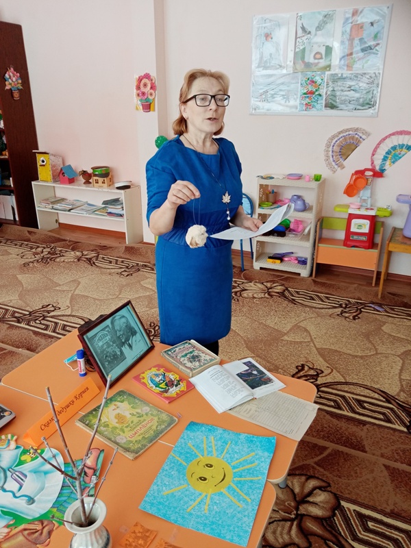 В начале мероприятии дети слушали рассказ о жизни и творчестве писателя, а затем отгадывали загадки, определяли сказочных героев, дружно собрали лучики солнца, помогли найти монетки, что бы купить самовар для Мухи–Цокотухи. К мероприятию была оформлена выставка «Сказки дедушки Корнея», где были представлены книги К.И.Чуковского и предметы из его произведений. Мероприятие проведено в рамках Недели детской и юношеской книги и посвящено 140-летию К.И.Чуковского-классика отечественной детской литературы.
