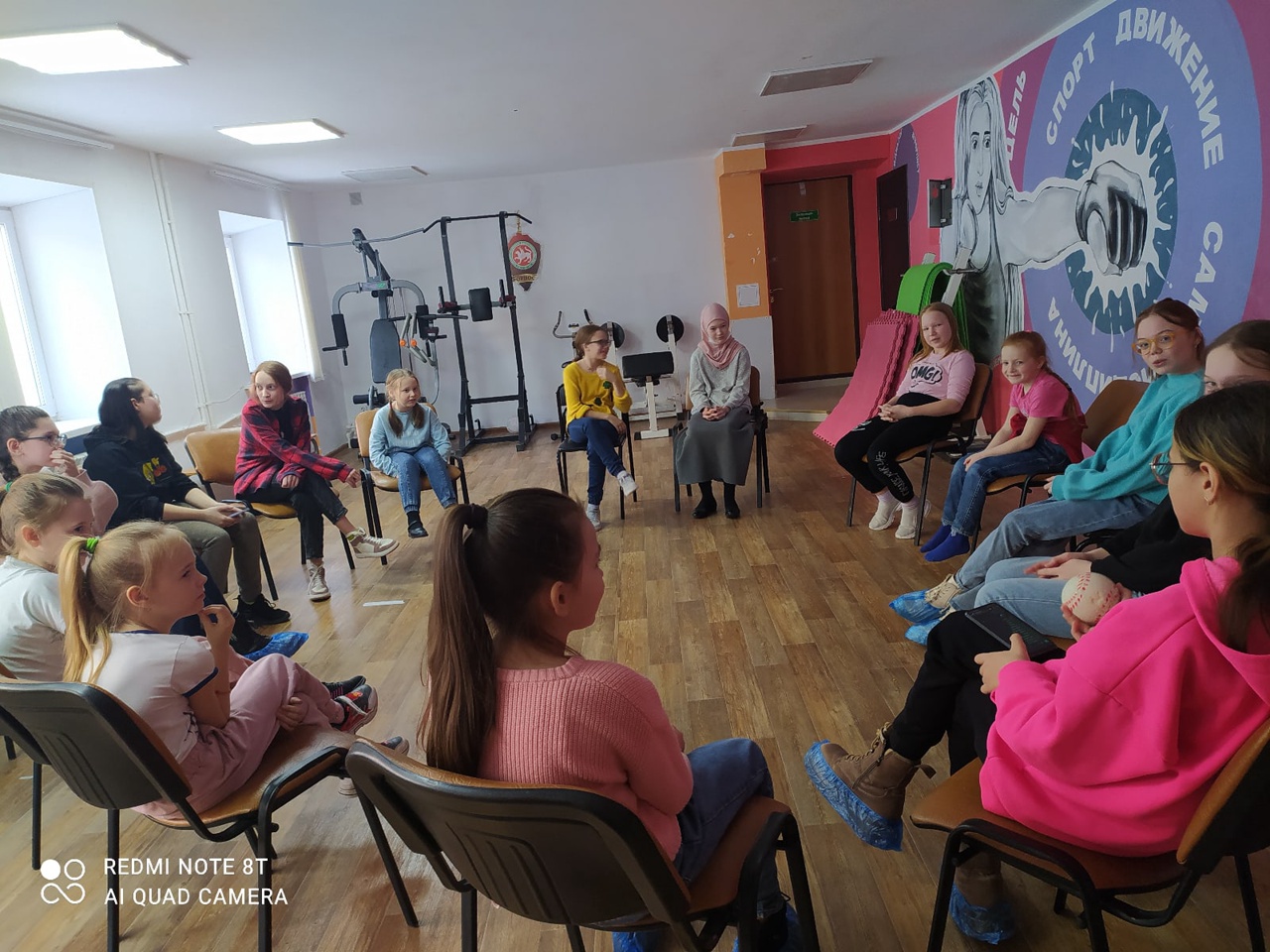 А пока мыло застывало, все проследовали в наш спортзал, где познакомились друг с другом ближе и поиграли в игры на стульчиках.
