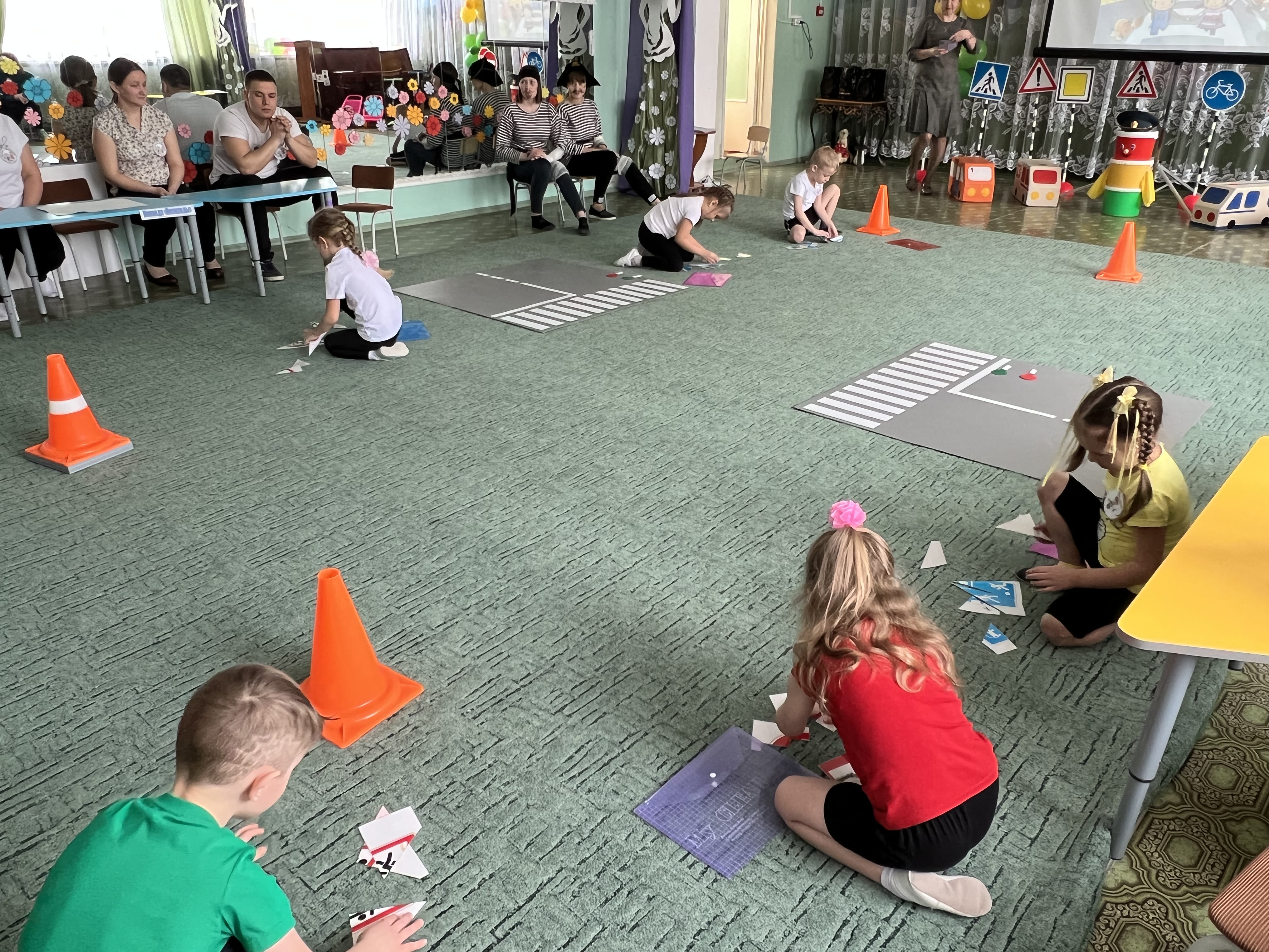 В начале мероприятия взрослые и дети разделились на две команды, где три ребенка и три взрослых. Первая команда «Пешеходы», капитан команды Карим, вторая — «Светофоры», капитан команды Антип.